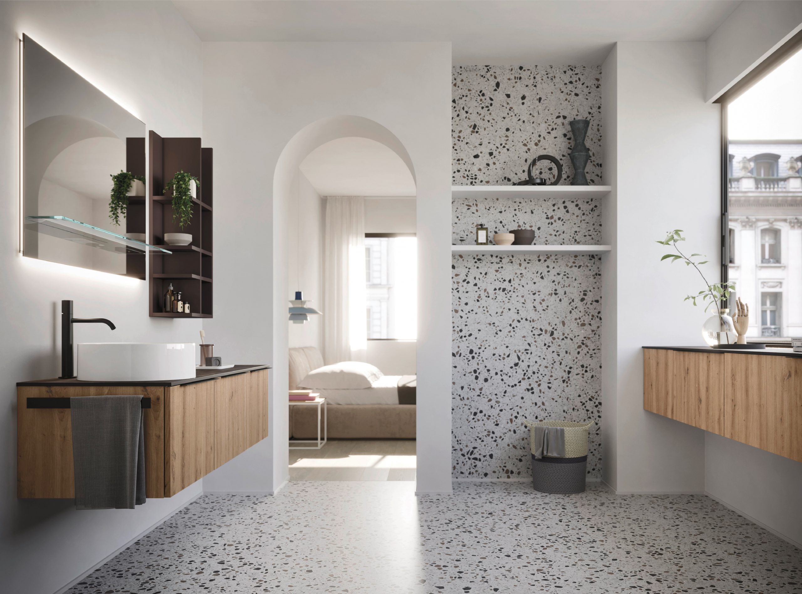 ho.me plus liscio: trendy bathroom furniture in thermostructured melamine