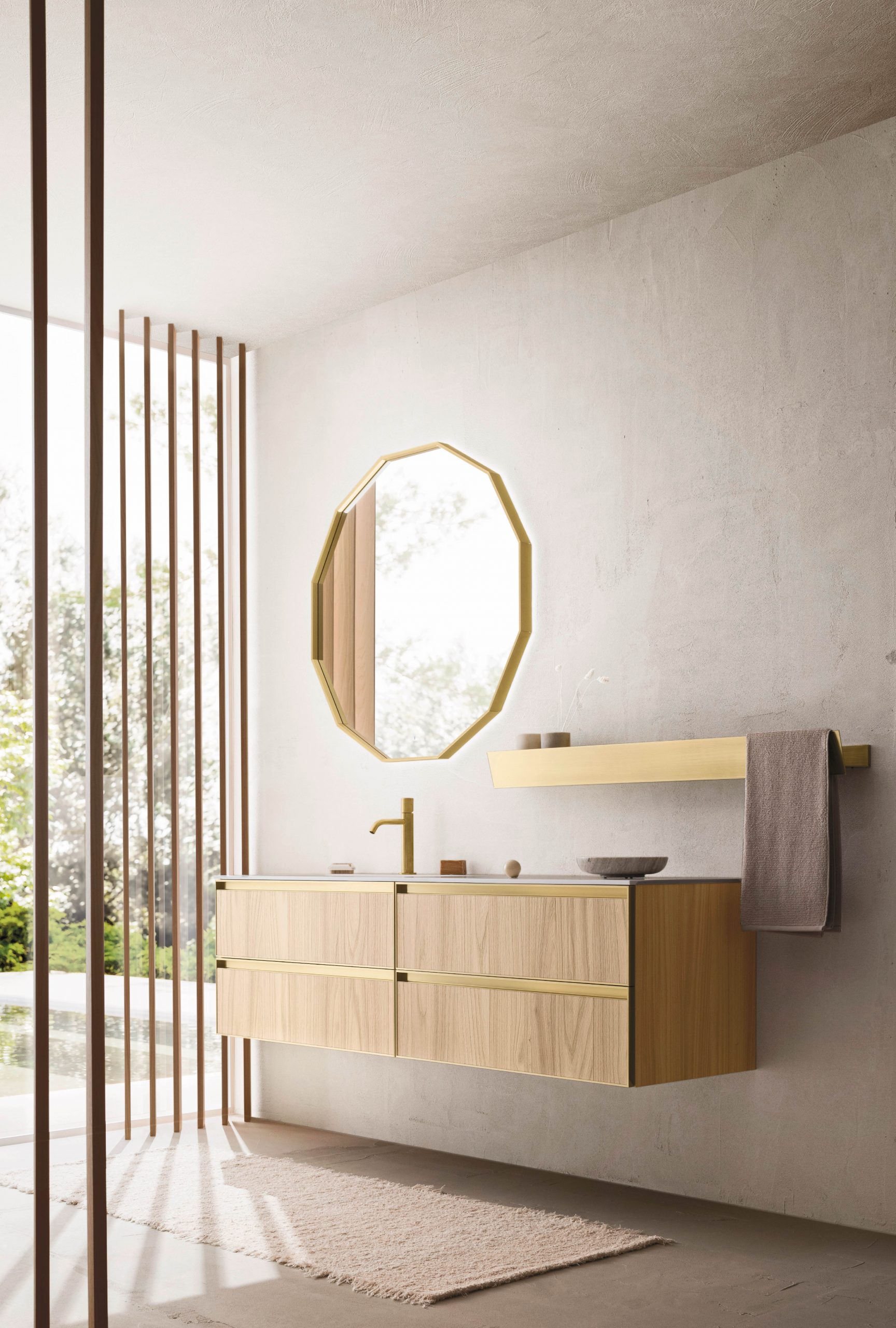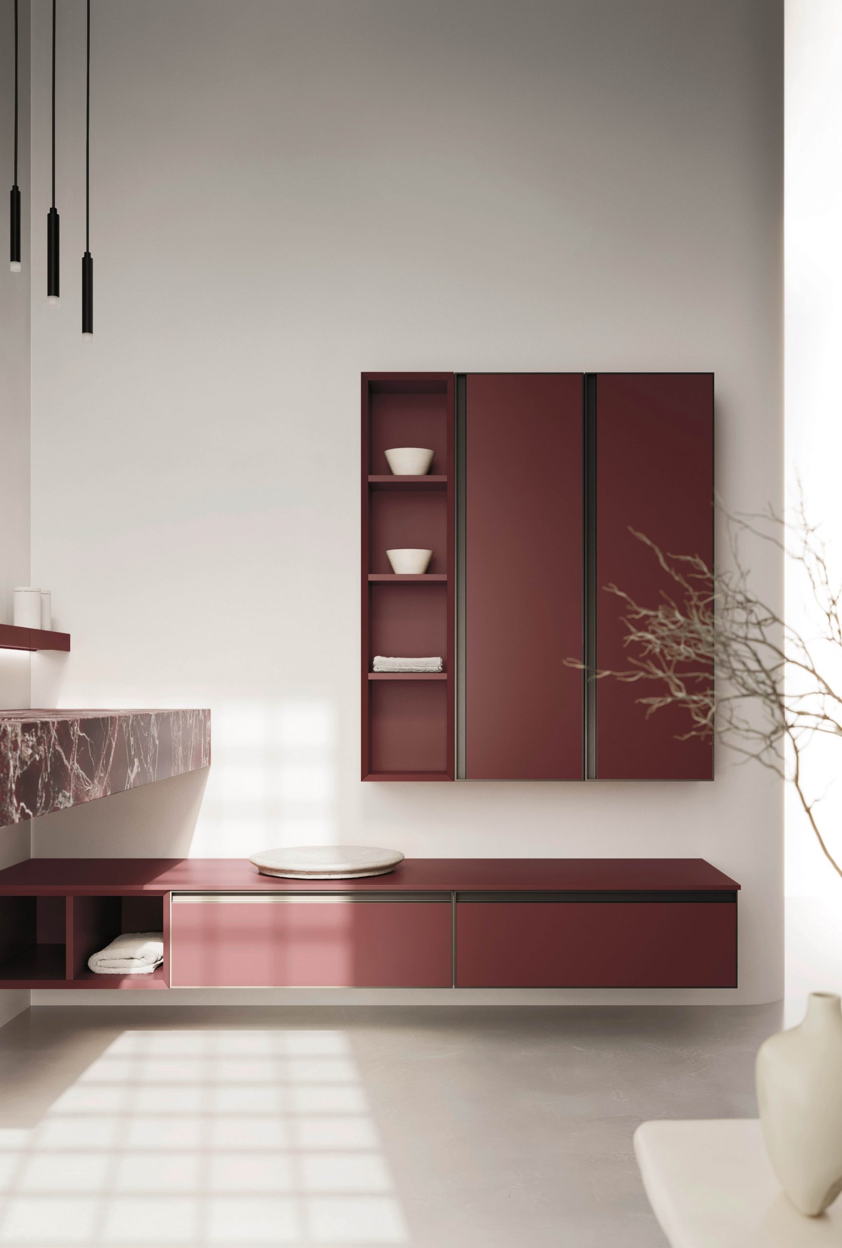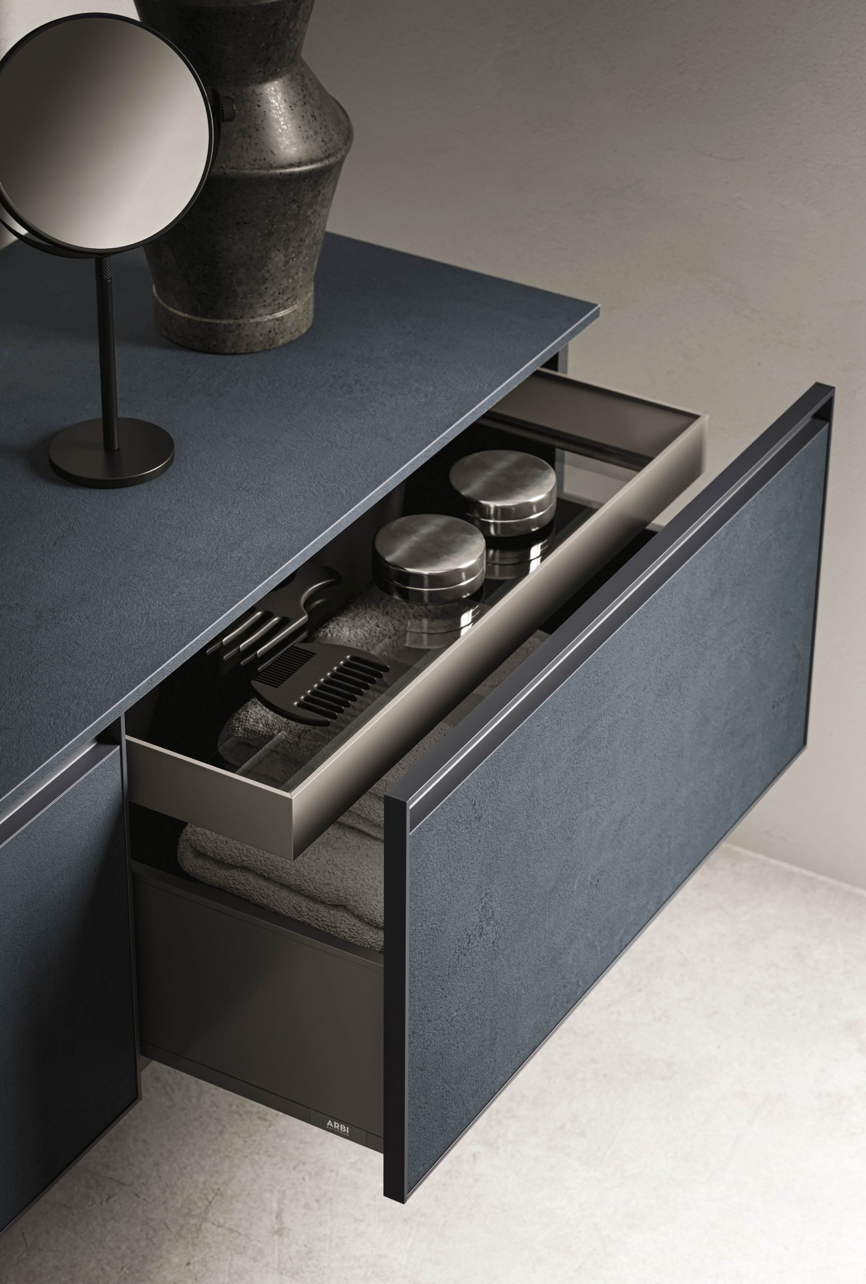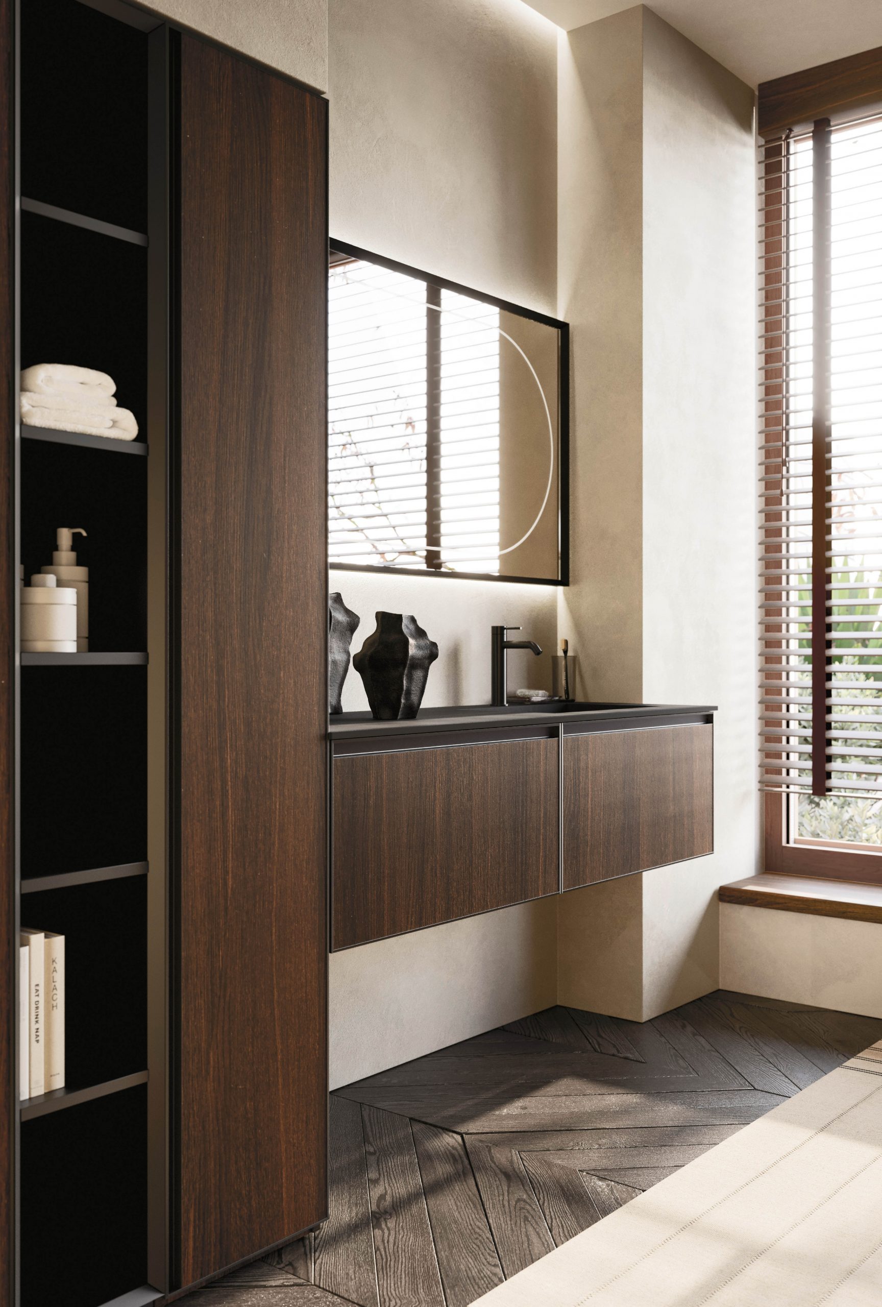 A sense of exclusive refinement, studied in every detail, distinguishes the Absolute collection. The aluminium frame door is the defining feature of the collection. A bathroom furniture design that evokes a sense of luxury, thanks to its high-quality materials and clean, striking lines. Freedom of interpretation and composition characterise Absolute which, thanks to its materials, surfaces and volumes, gives shape to new furnishing solutions.