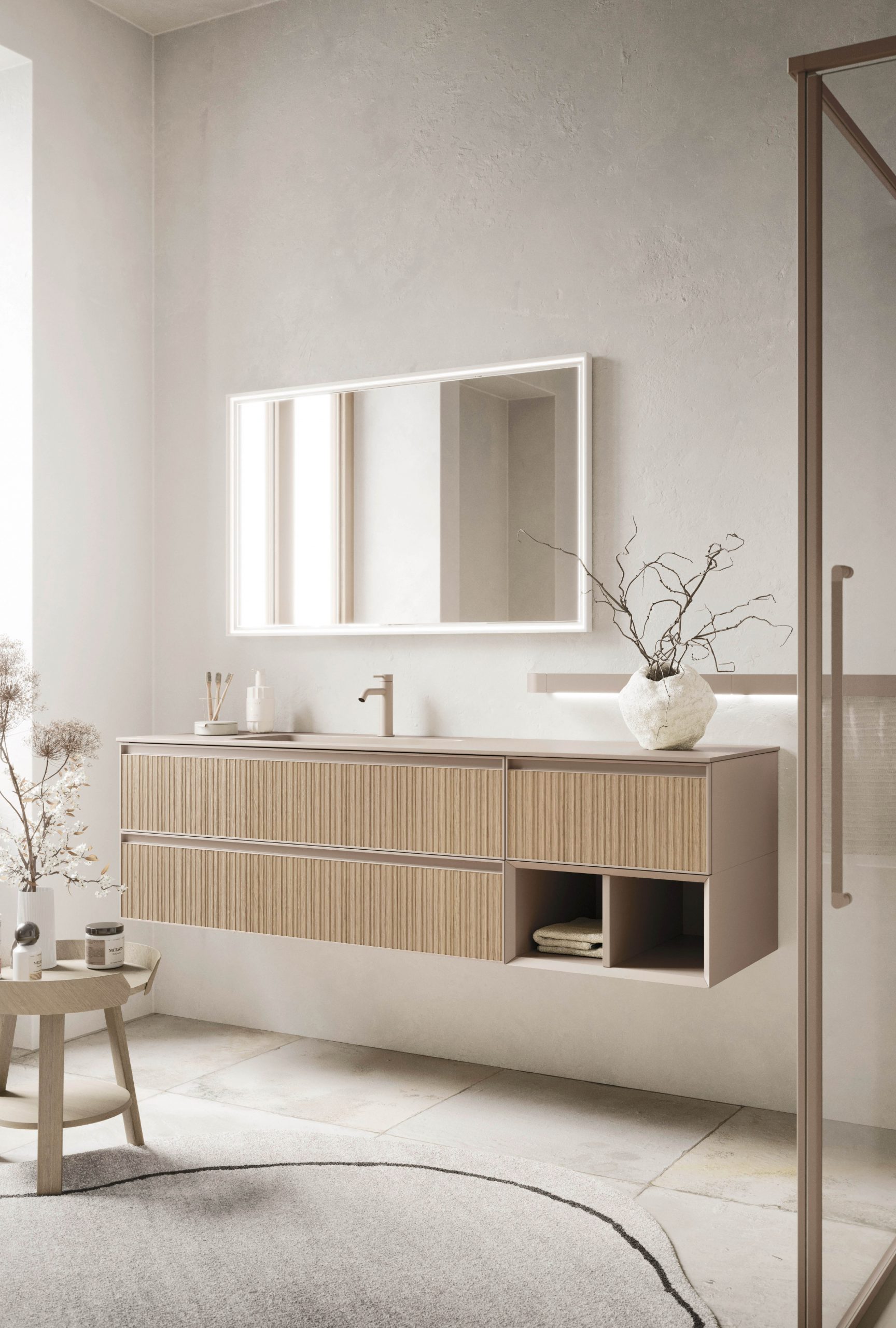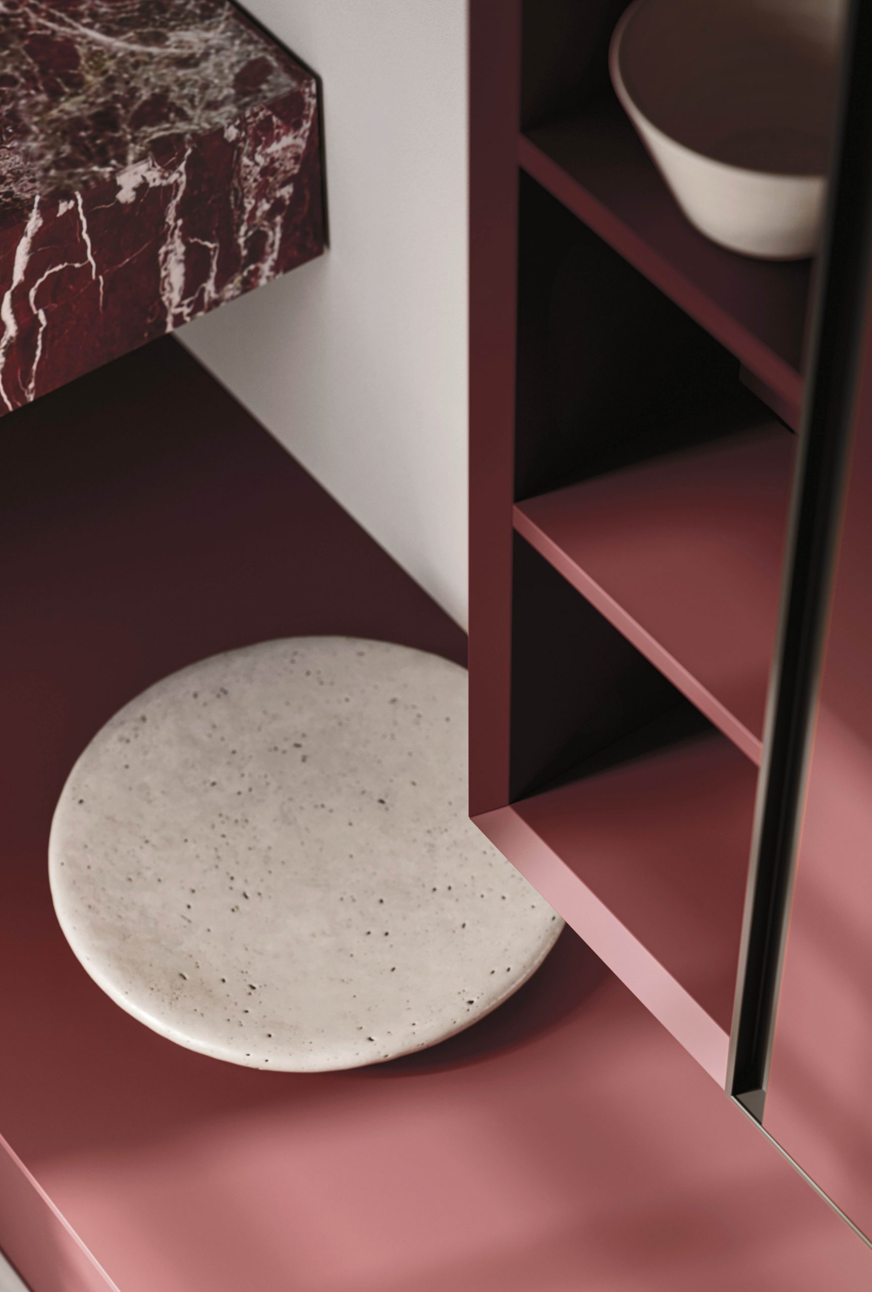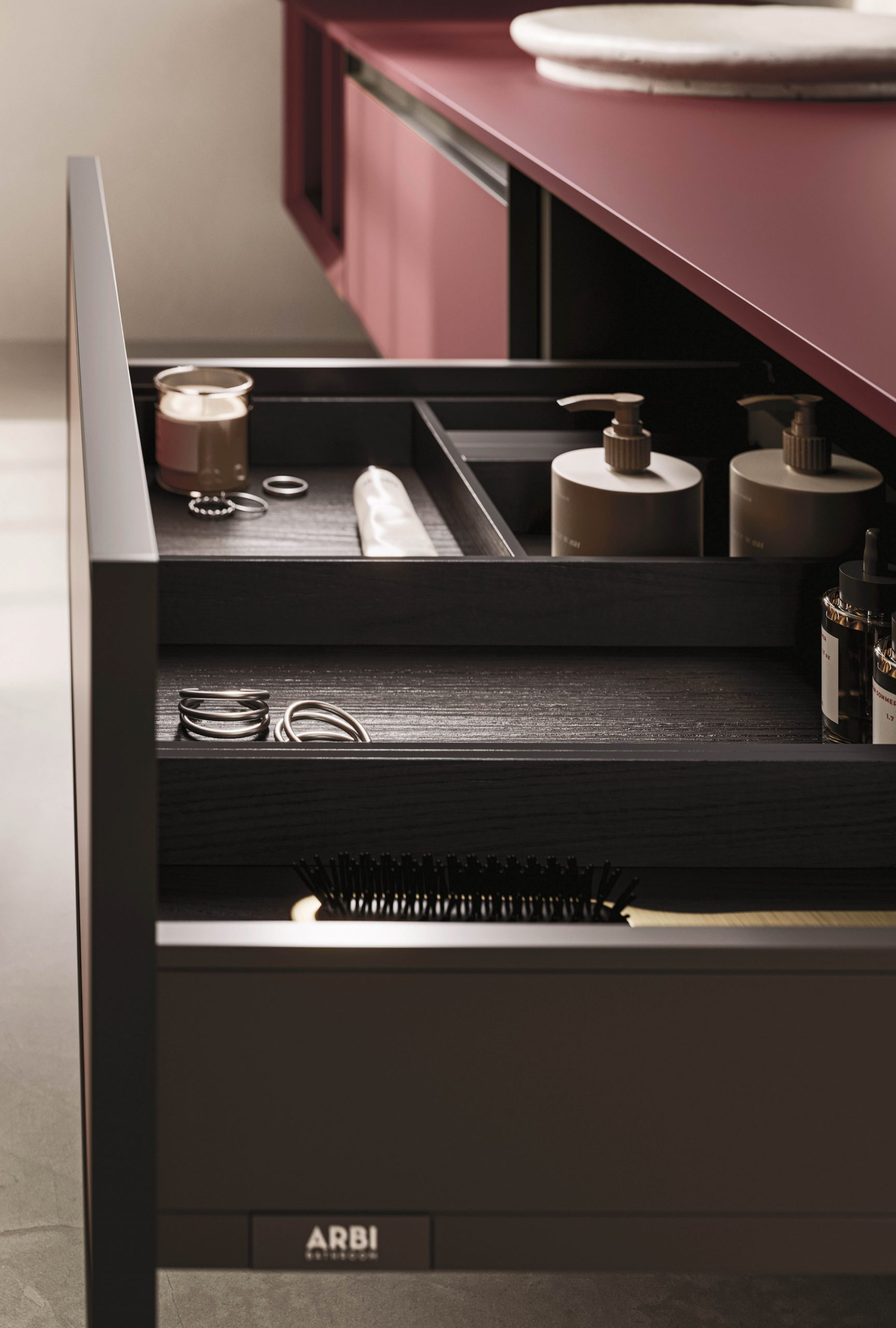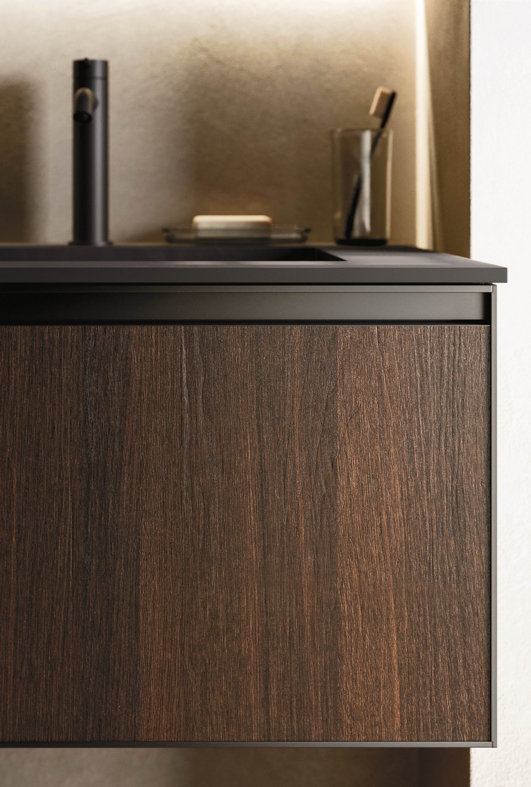 A sense of exclusive refinement, studied in every detail, distinguishes the Absolute collection. The aluminium frame door is the defining feature of the collection. A bathroom furniture design that evokes a sense of luxury, thanks to its high-quality materials and clean, striking lines. Freedom of interpretation and composition characterise Absolute which, thanks to its materials, surfaces and volumes, gives shape to new furnishing solutions.
