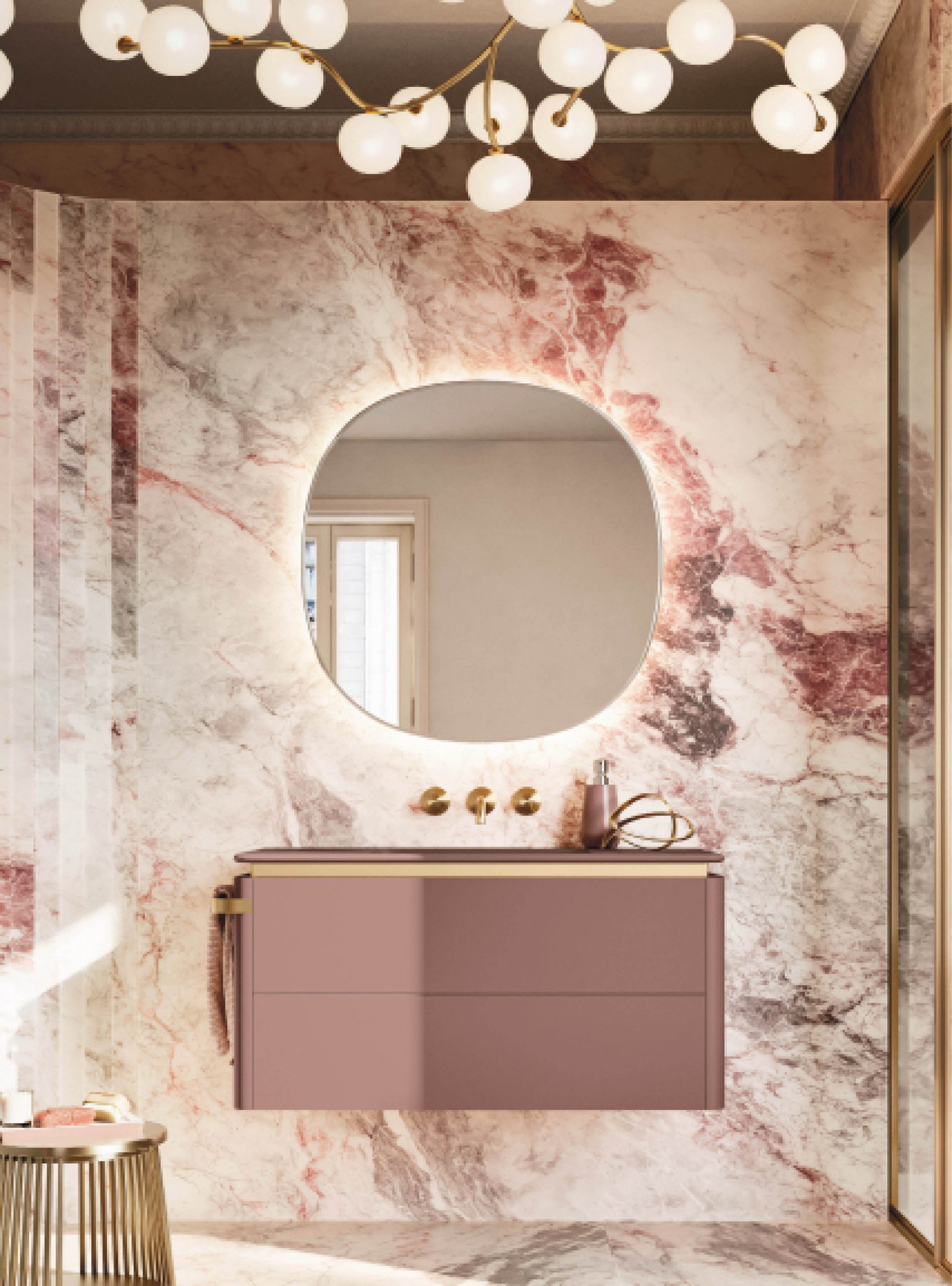 Mirror with bevelled glass, backlit with 3000 K LED light / without switch