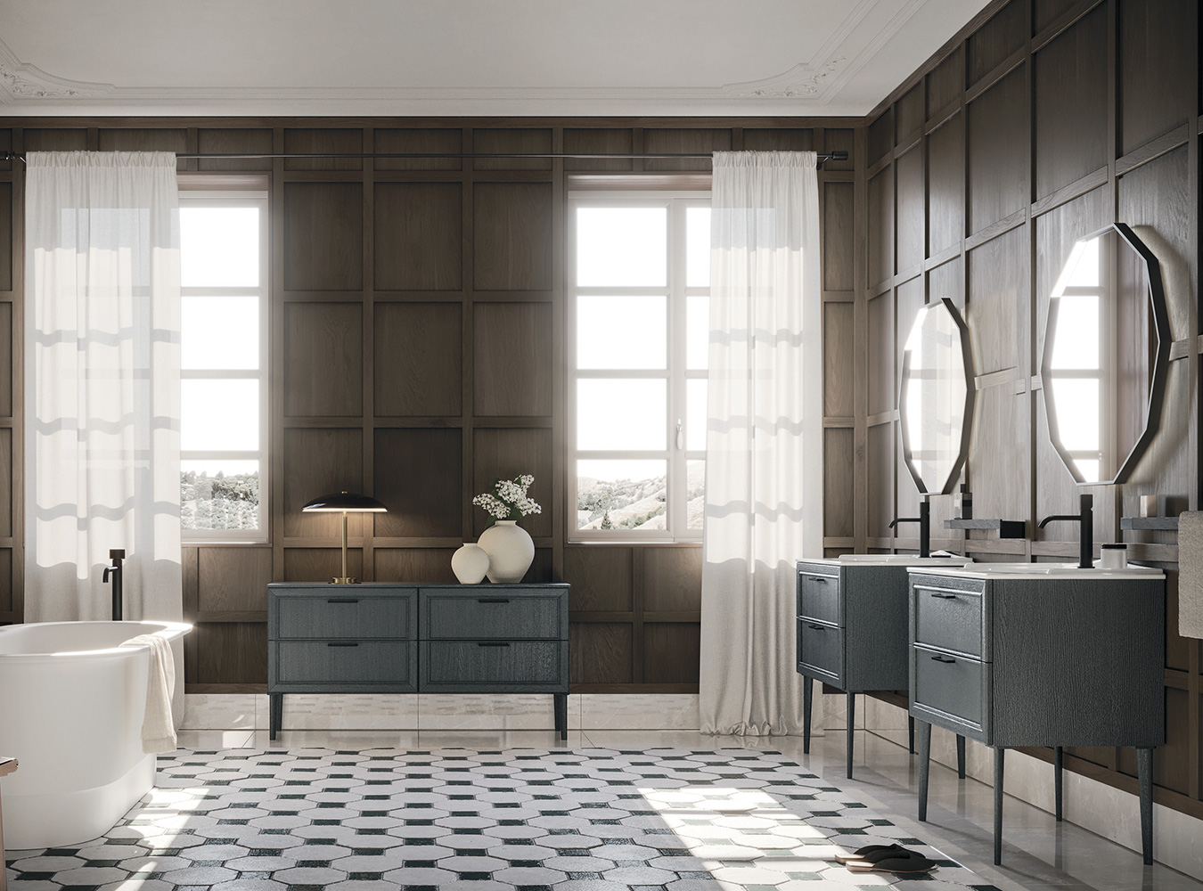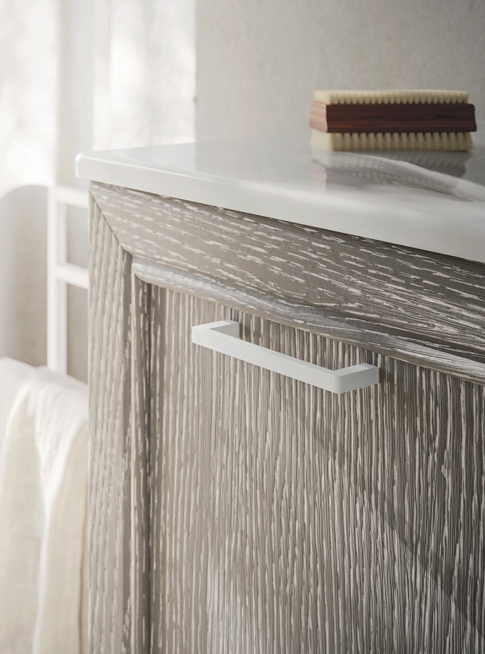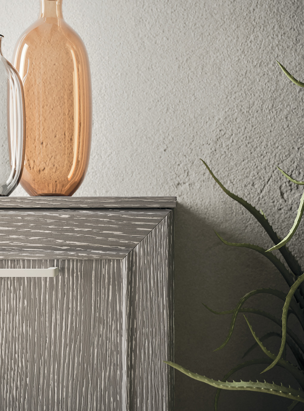 The traditional framed door in solid wood, the protagonist of family memories, intimate and welcoming situations, warm and natural emotions, is interpreted in the light of a modern sensitivity and compositional versatility. From the most linear to the most refined shapes, with suspended volumes or on legs or feet, in an extremely wide range of colors and finishes for oak: the essence of elegance.