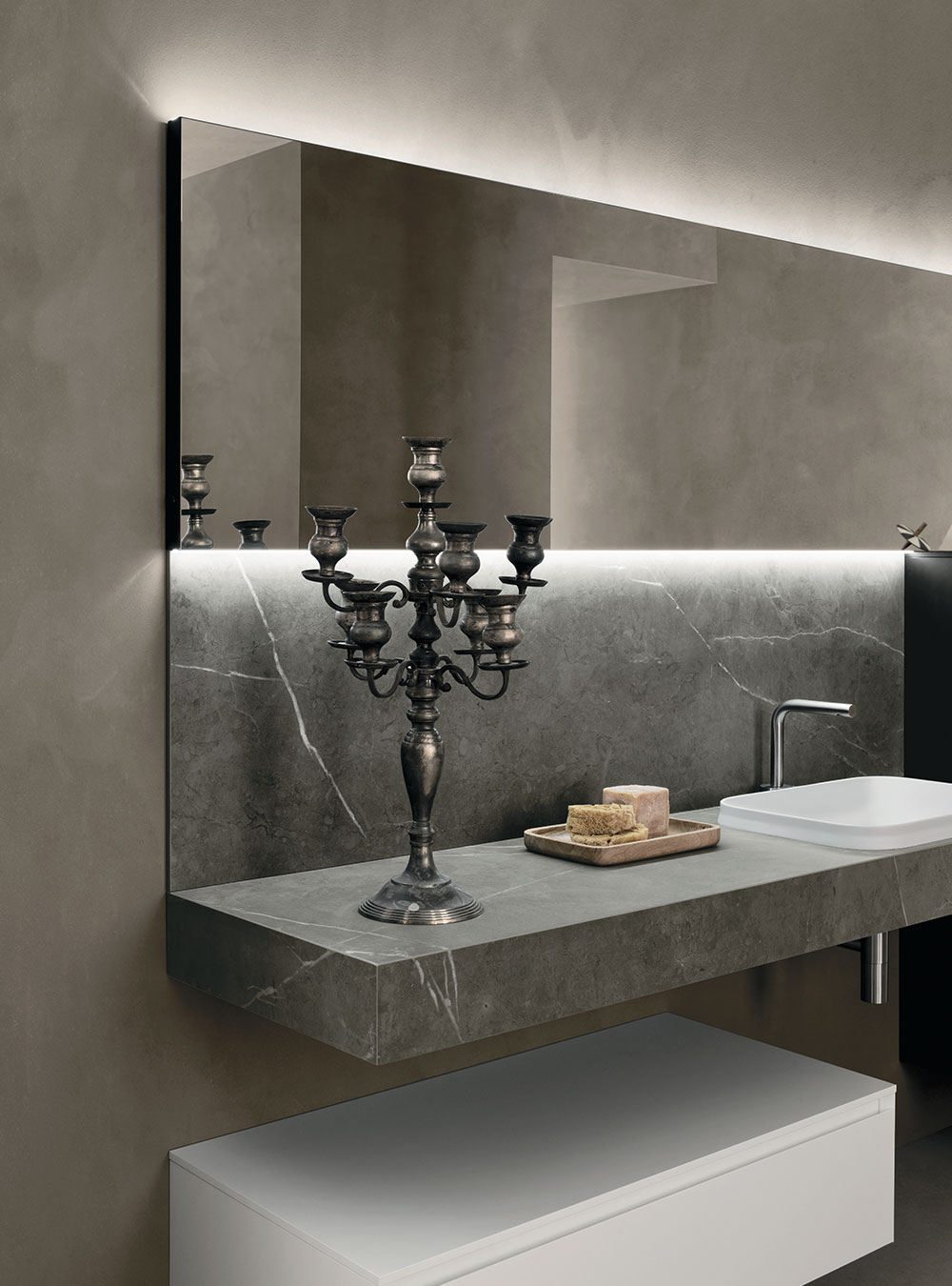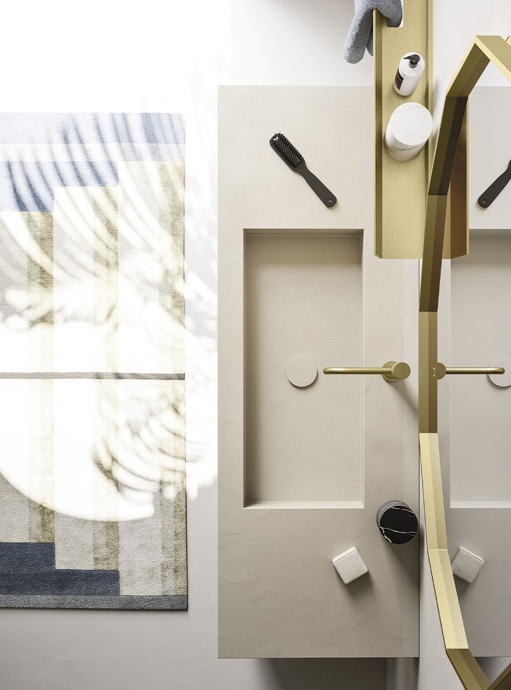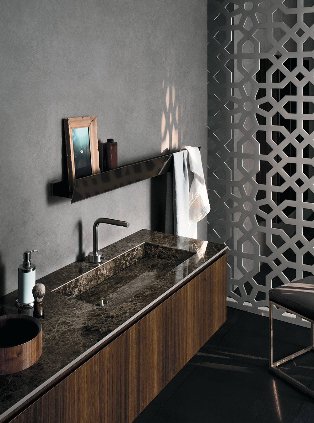 Code: modularity and refinement of materials for bathroom furniture with a particular 45° cut
