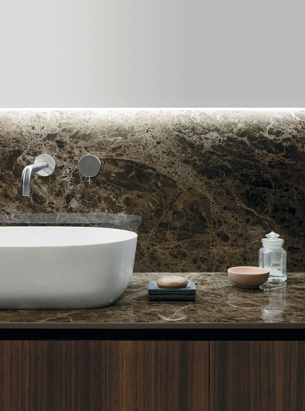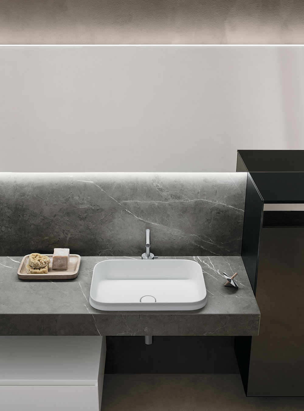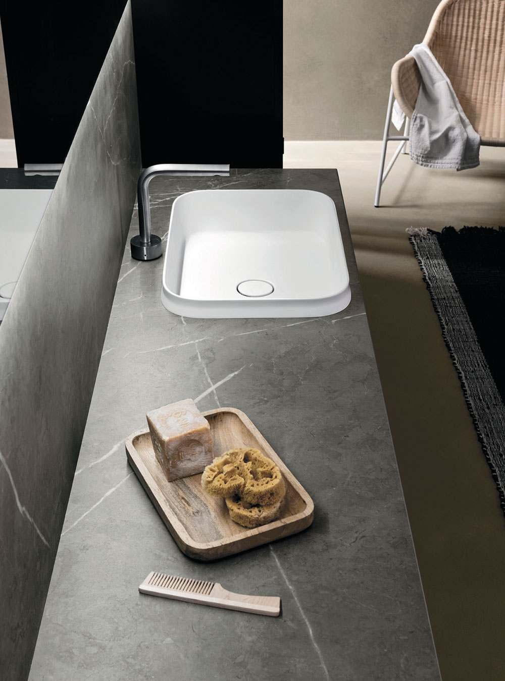 Code: modularity and refinement of materials for bathroom furniture with a particular 45° cut
