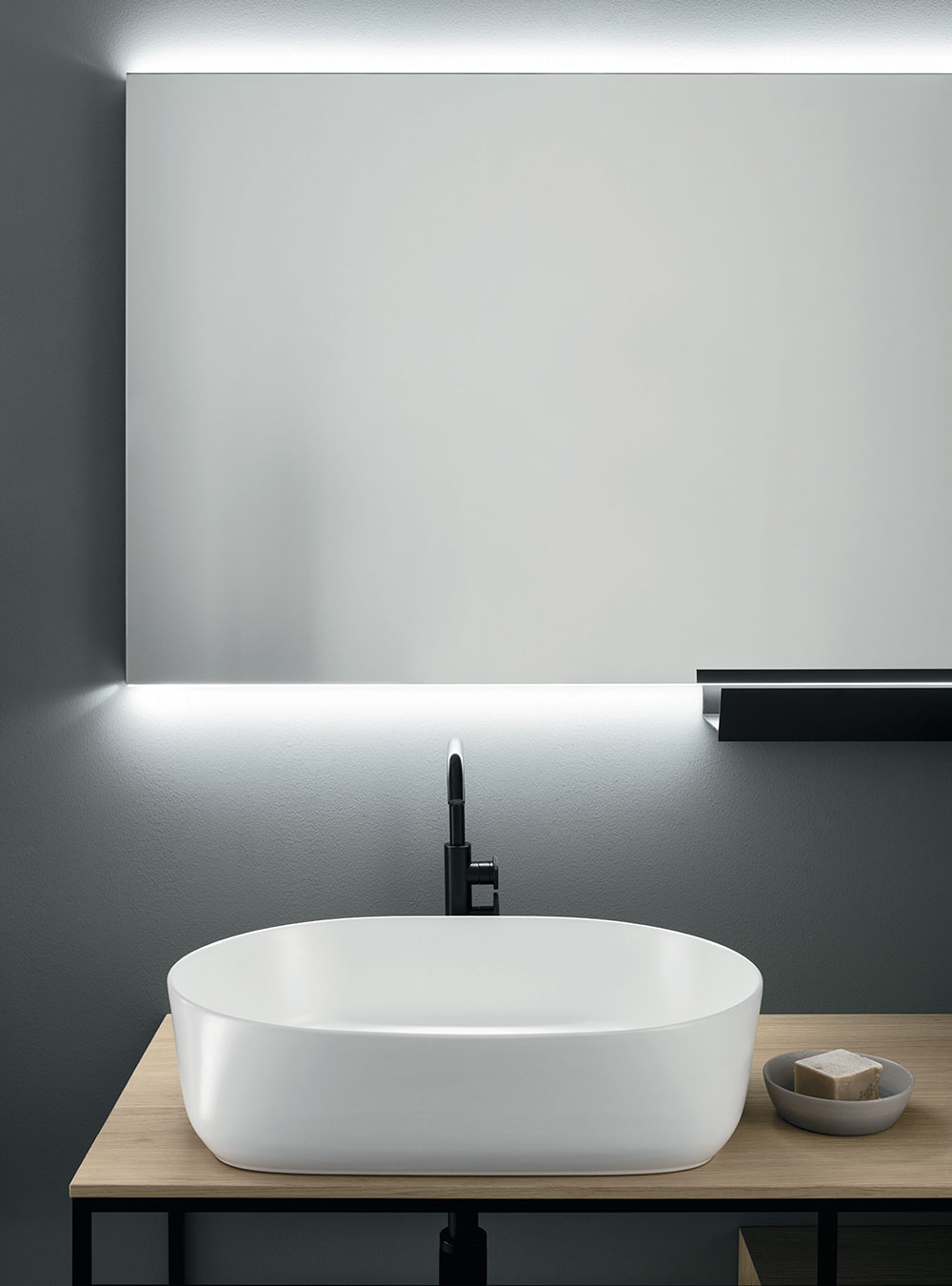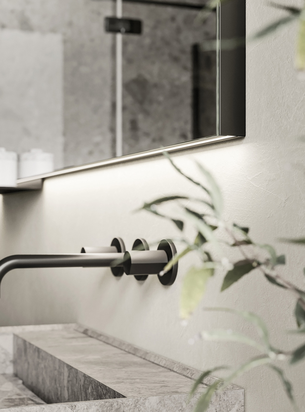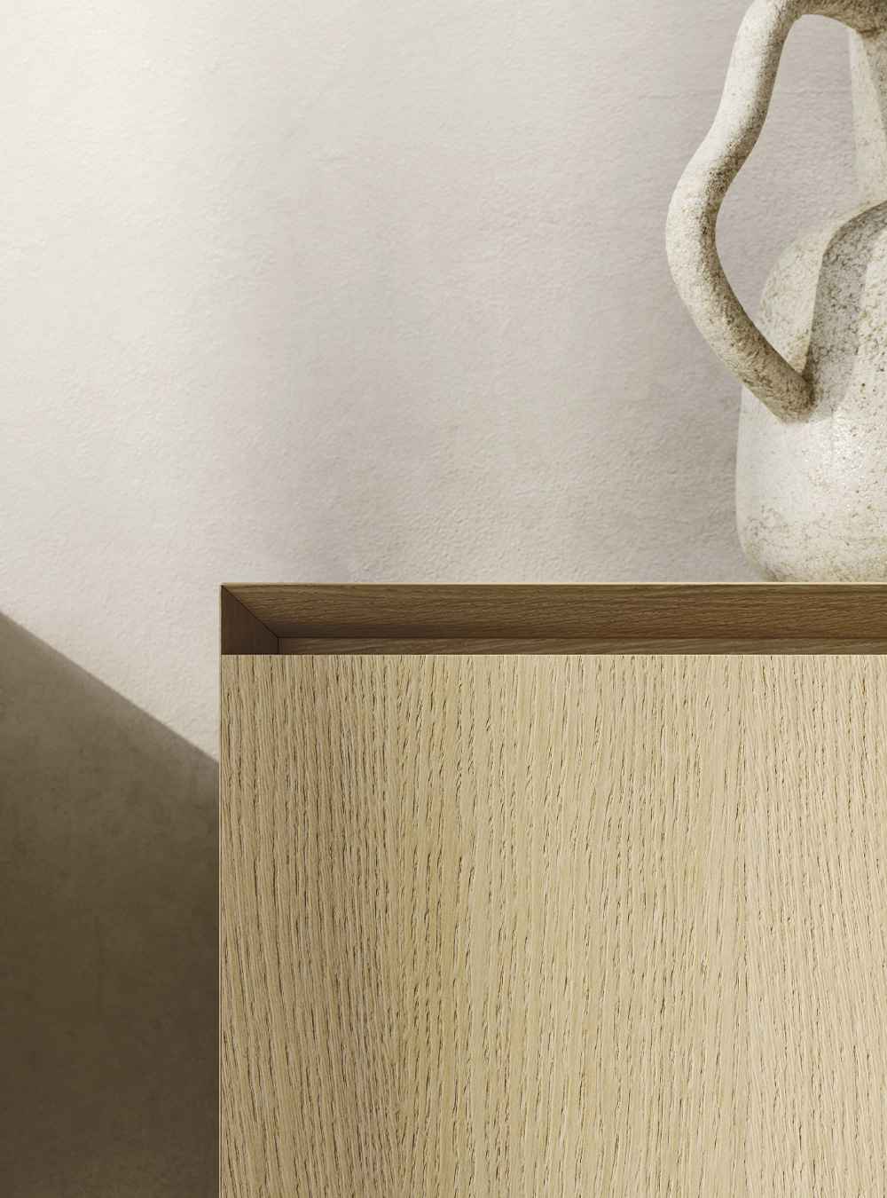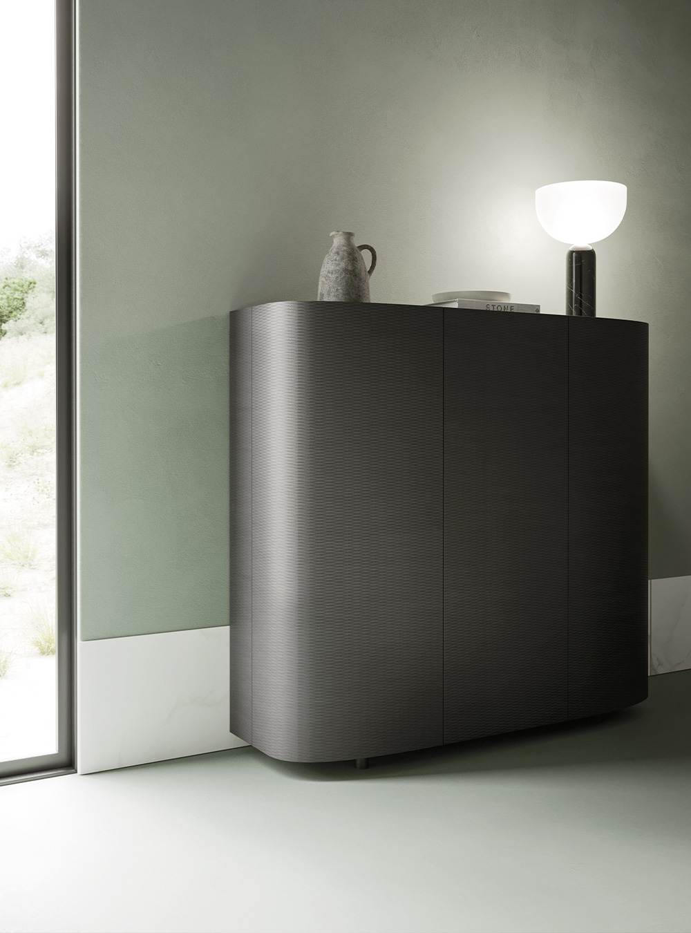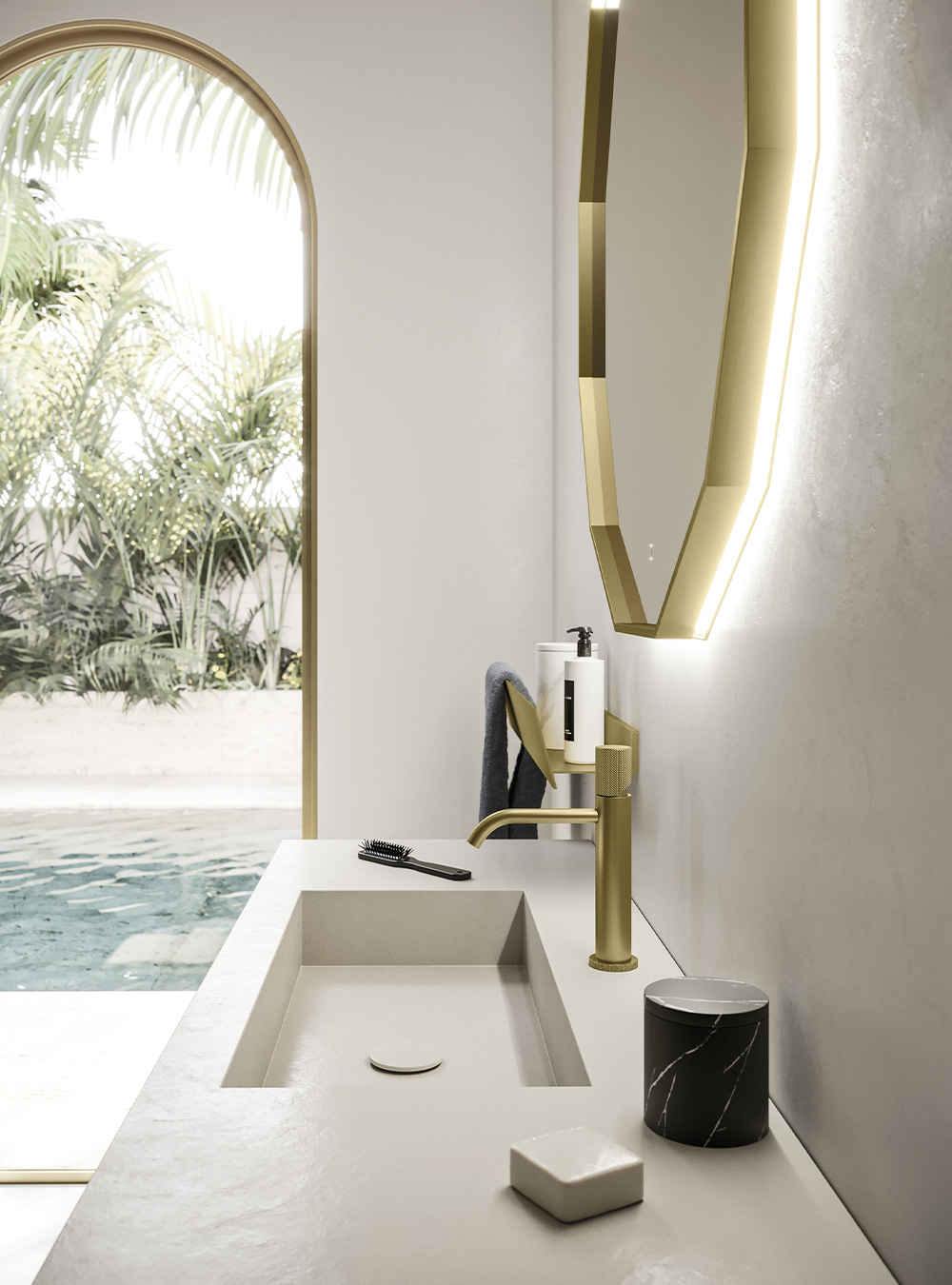 Code is totally in step with the latest trends in bathroom furniture and is geared towards creating spaces with a strong focus on design and wellbeing. A wide range of finishes, wall units and consoles of all types is available, together with a huge choice of complementary items. These ensure the products offered are highly customisable, giving rise to bespoke solutions to accommodate any interior design requirement. With integrated handle grip and the characteristic 45° cut on the sides and front, Code excels for its wide range of modular units and the sophistication of its materials, which mean that pairings of different finishes such as oak or eucalyptus wood and matt or velvet lacquers can be created.