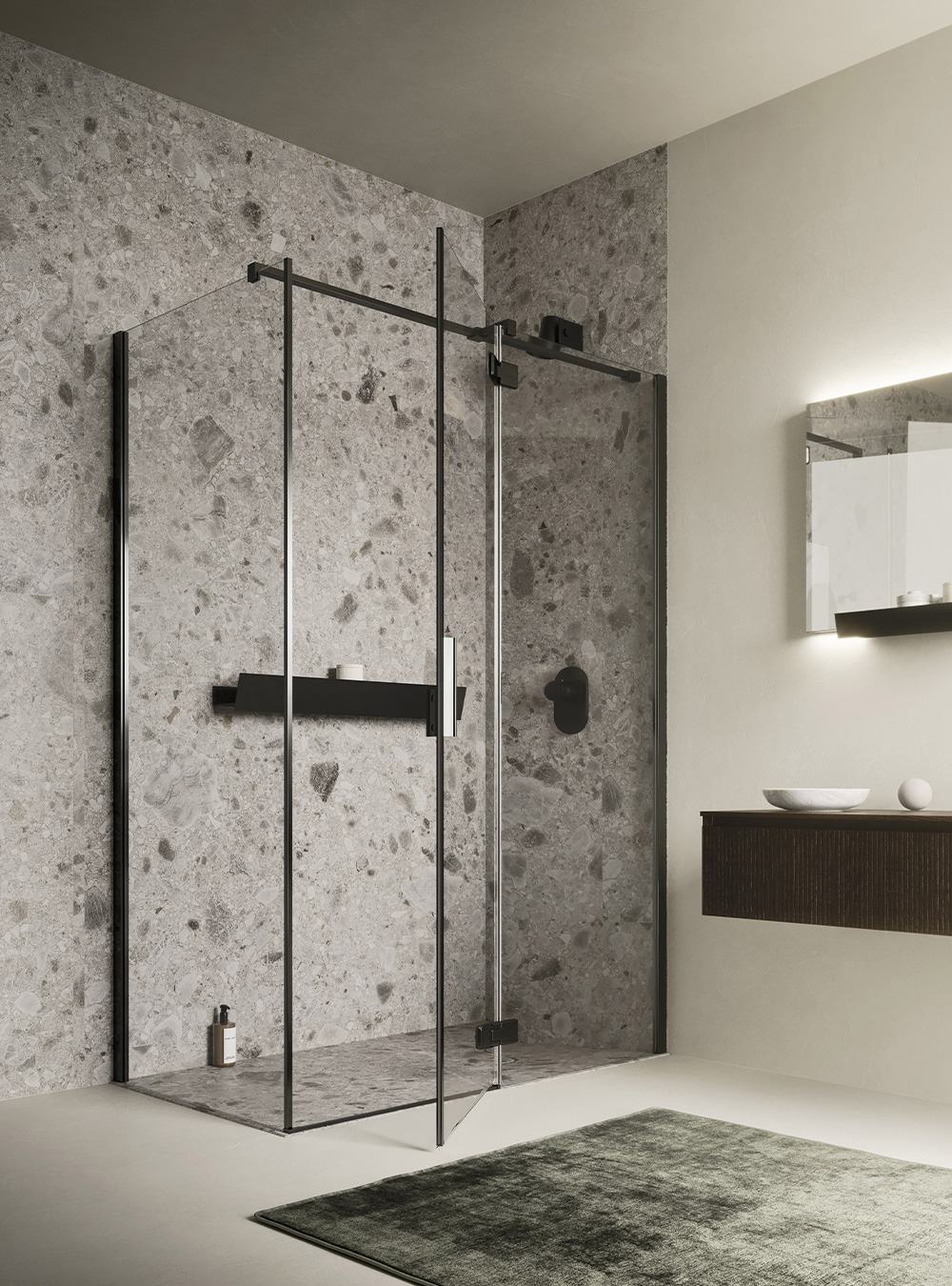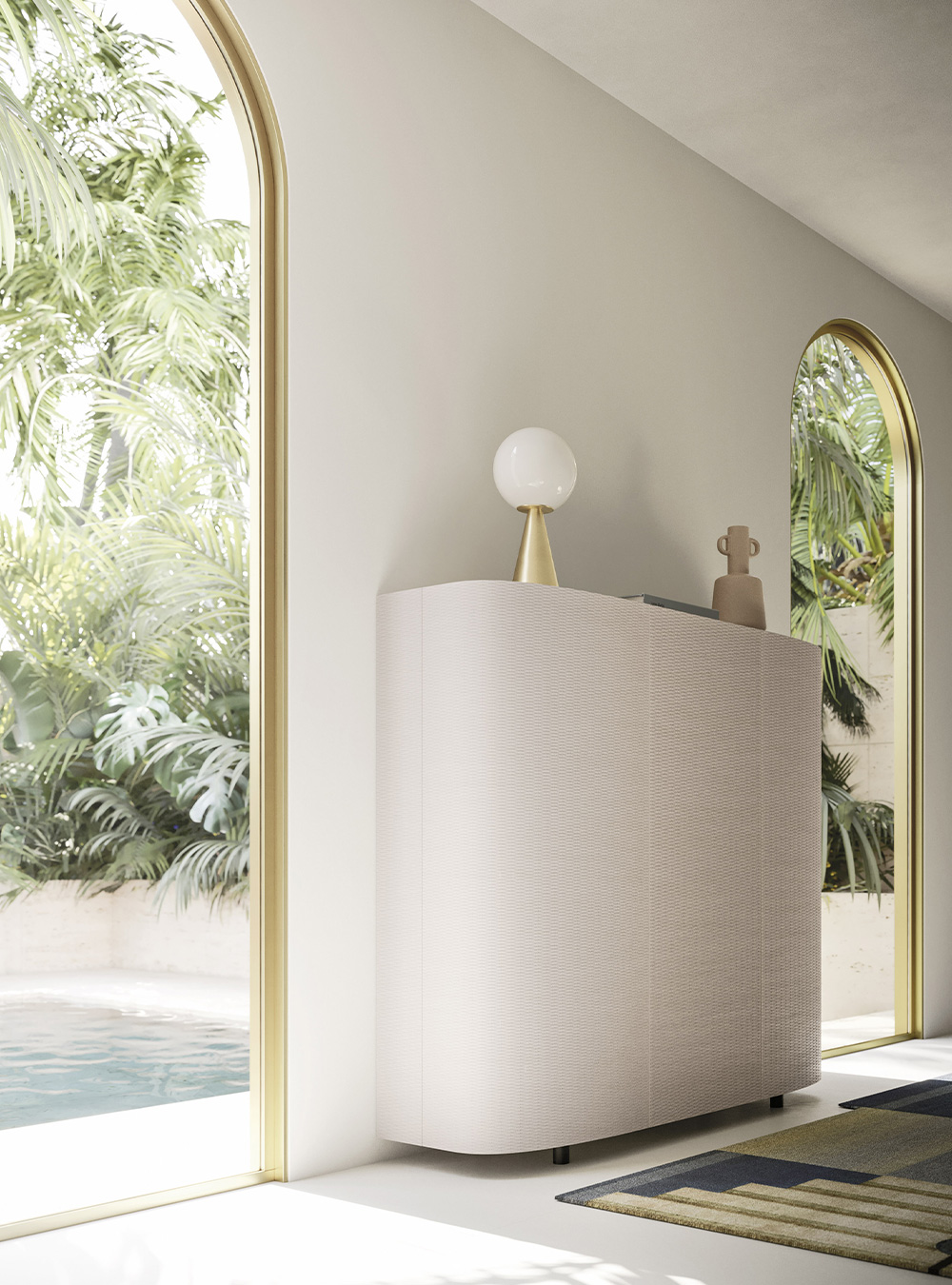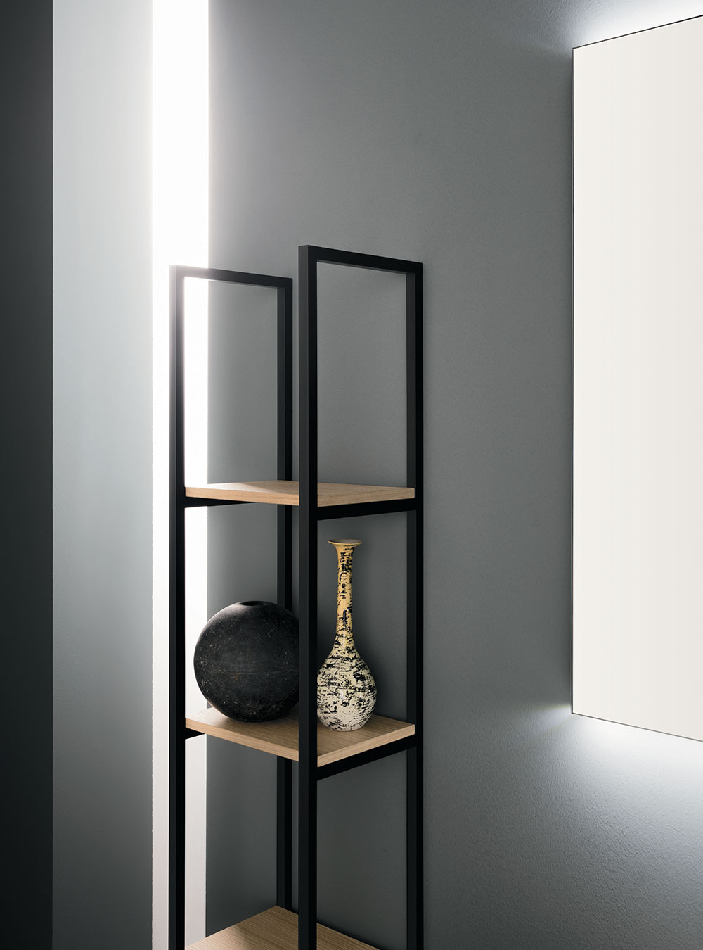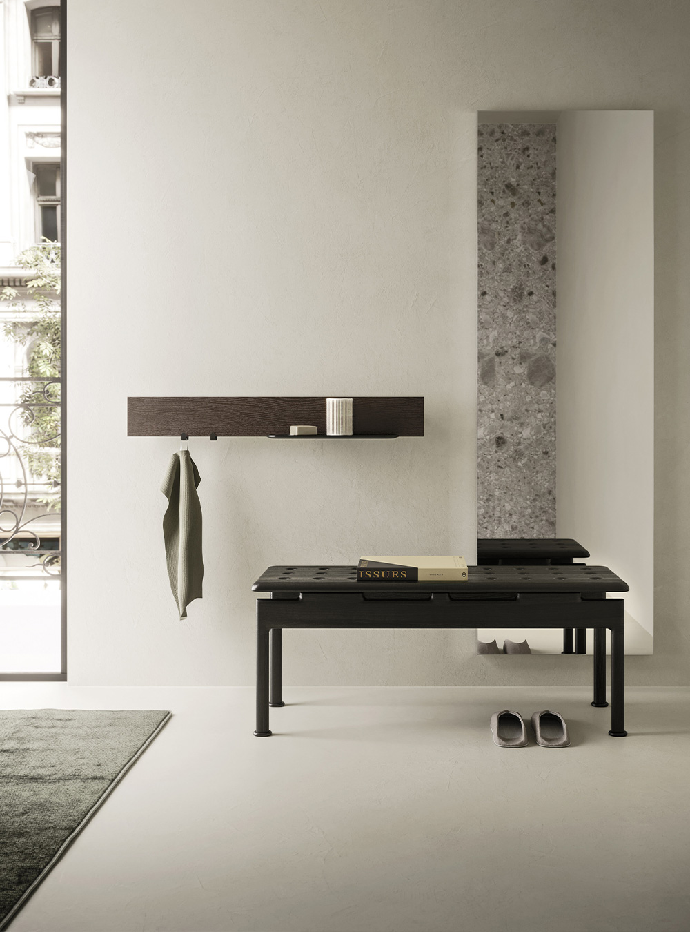 Code is totally in step with the latest trends in bathroom furniture and is geared towards creating spaces with a strong focus on design and wellbeing. A wide range of finishes, wall units and consoles of all types is available, together with a huge choice of complementary items. These ensure the products offered are highly customisable, giving rise to bespoke solutions to accommodate any interior design requirement. With integrated handle grip and the characteristic 45° cut on the sides and front, Code excels for its wide range of modular units and the sophistication of its materials, which mean that pairings of different finishes such as oak or eucalyptus wood and matt or velvet lacquers can be created.