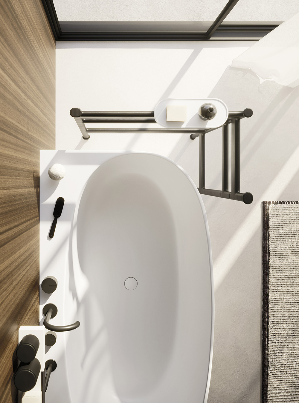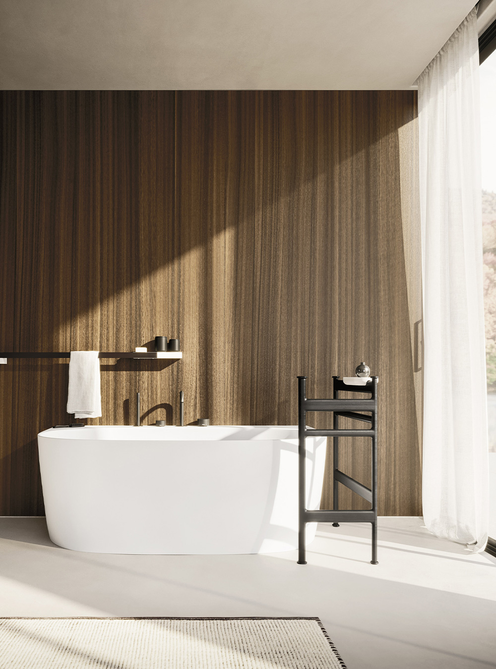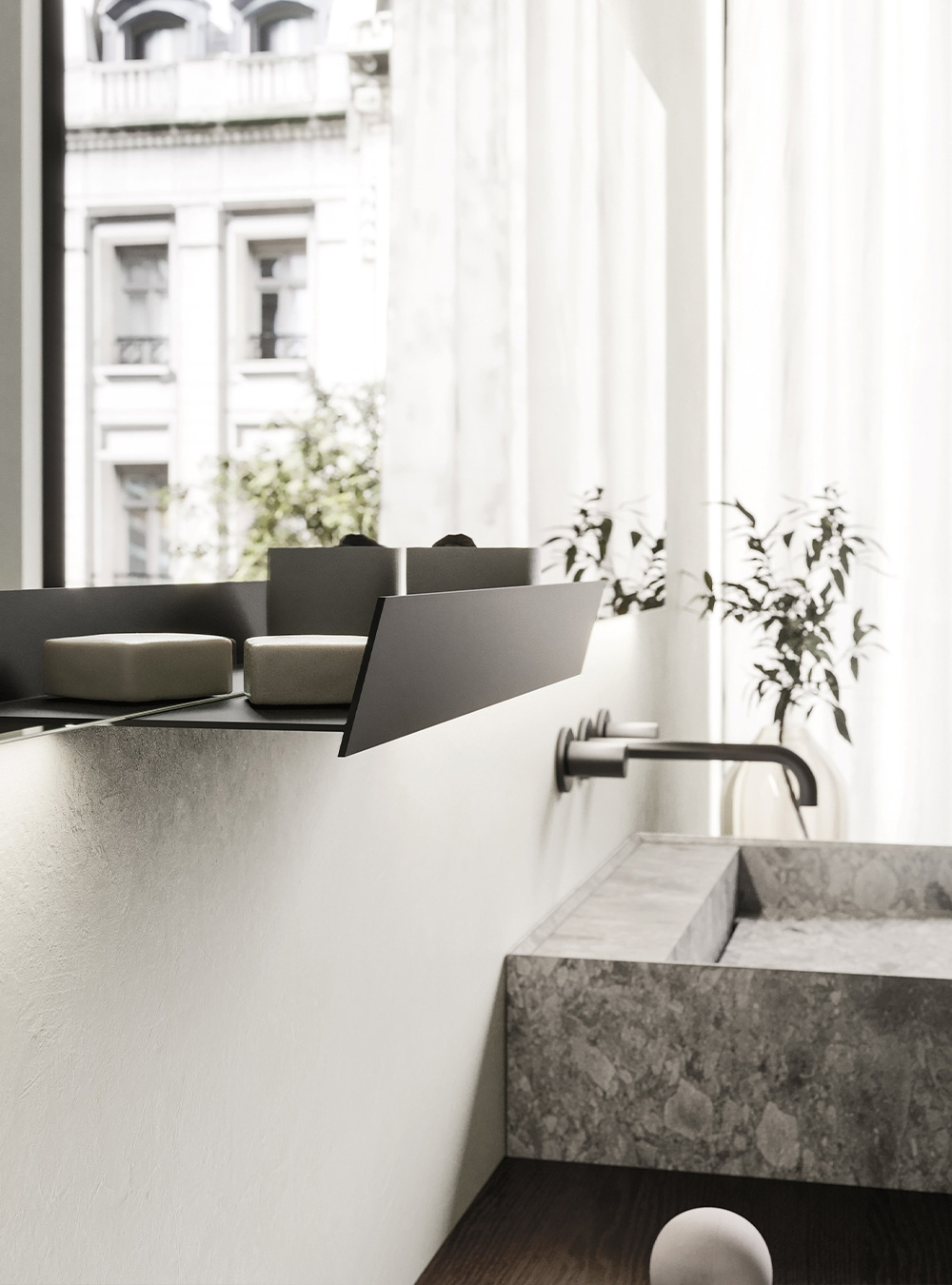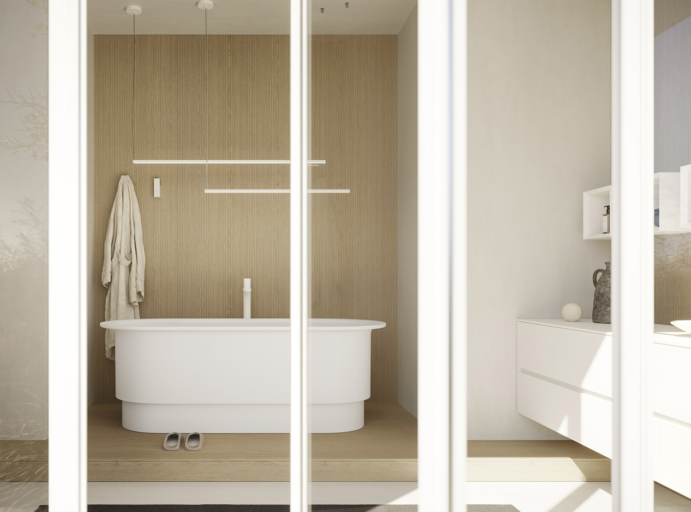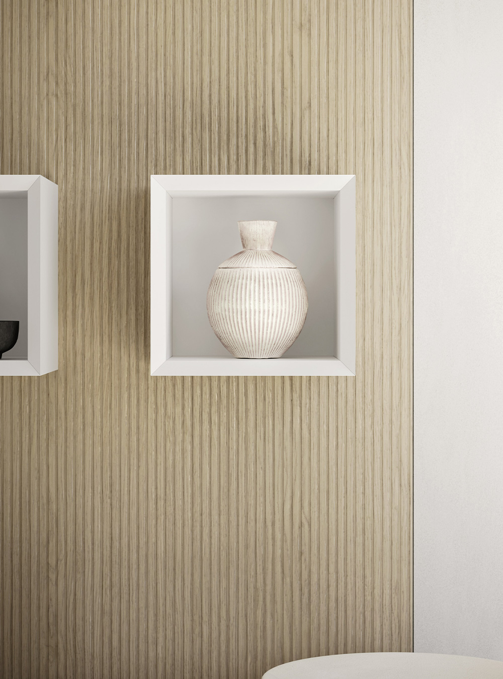 Code is totally in step with the latest trends in bathroom furniture and is geared towards creating spaces with a strong focus on design and wellbeing. A wide range of finishes, wall units and consoles of all types is available, together with a huge choice of complementary items. These ensure the products offered are highly customisable, giving rise to bespoke solutions to accommodate any interior design requirement. With integrated handle grip and the characteristic 45° cut on the sides and front, Code excels for its wide range of modular units and the sophistication of its materials, which mean that pairings of different finishes such as oak or eucalyptus wood and matt or velvet lacquers can be created.