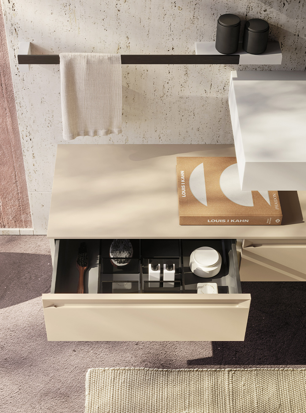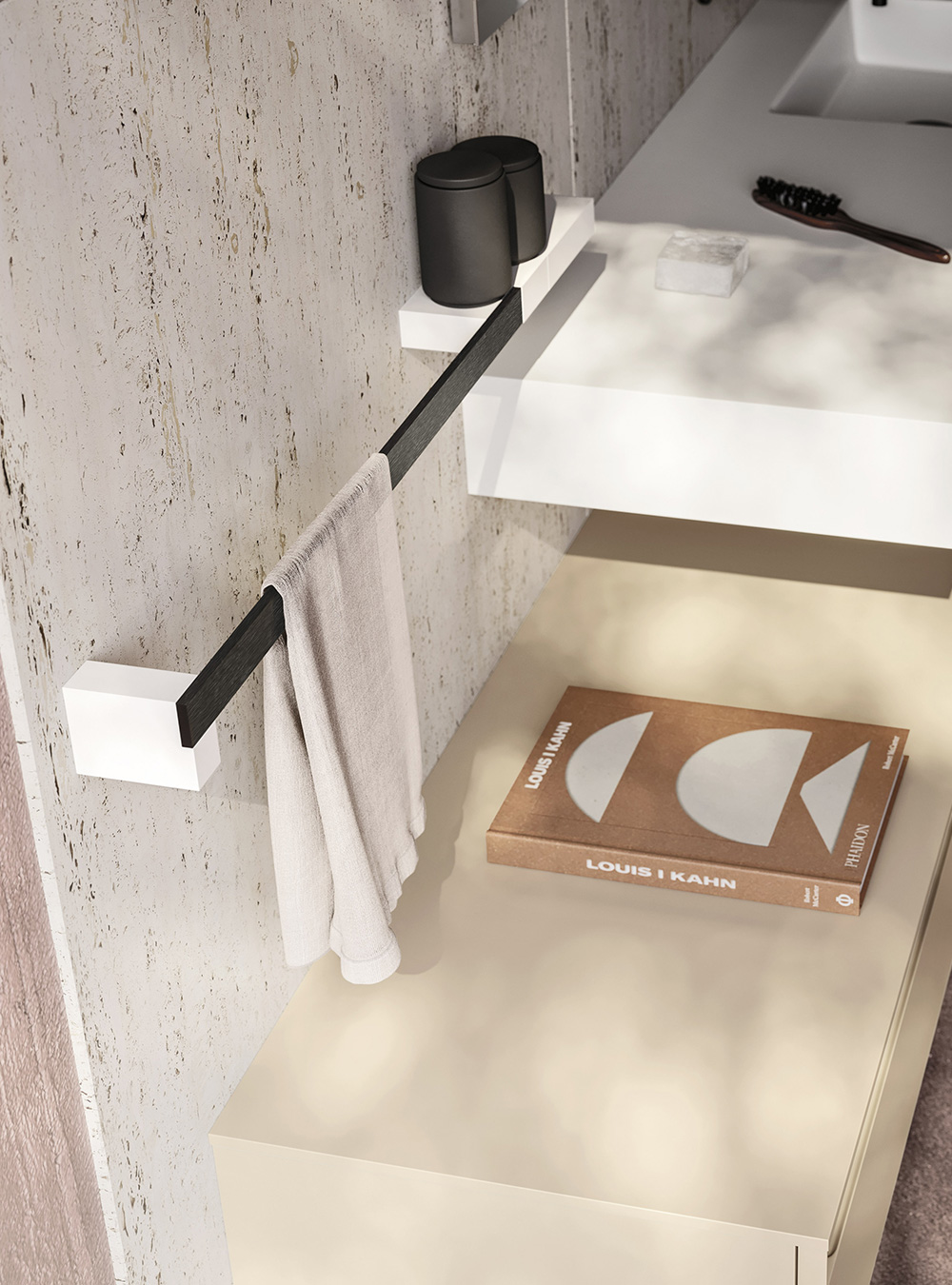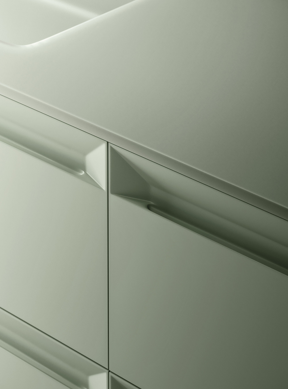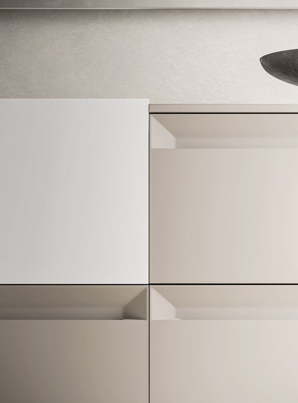 With its peculiar 45 ° inclination that seems to welcome and accompany the hand grip, the recessed groove of Fold is the characterizing element of a project that transforms essentiality into versatility. The modularity of the project and the choice between multiple chromatic and material sensations, allow you to interpret each space in a special way.