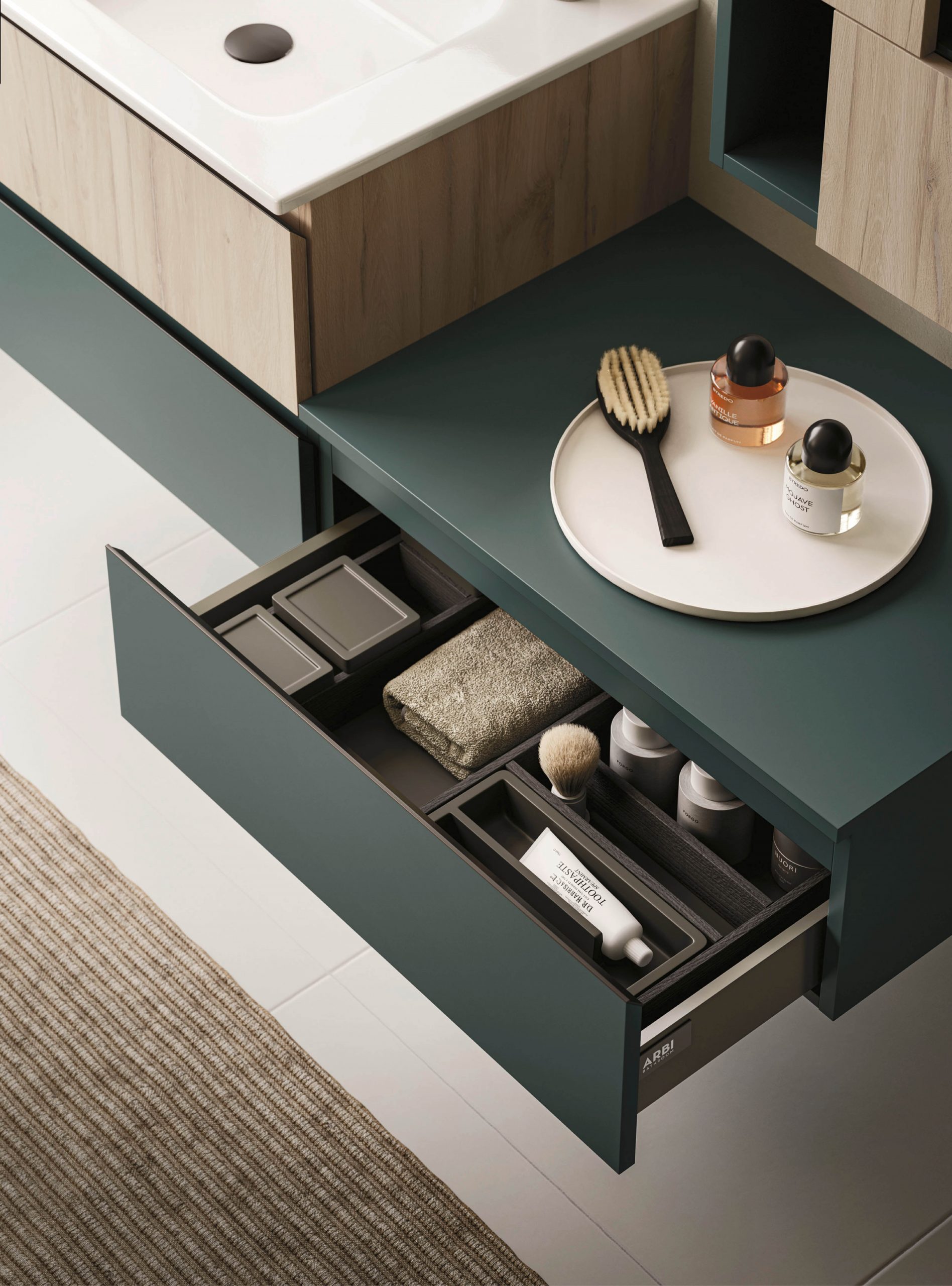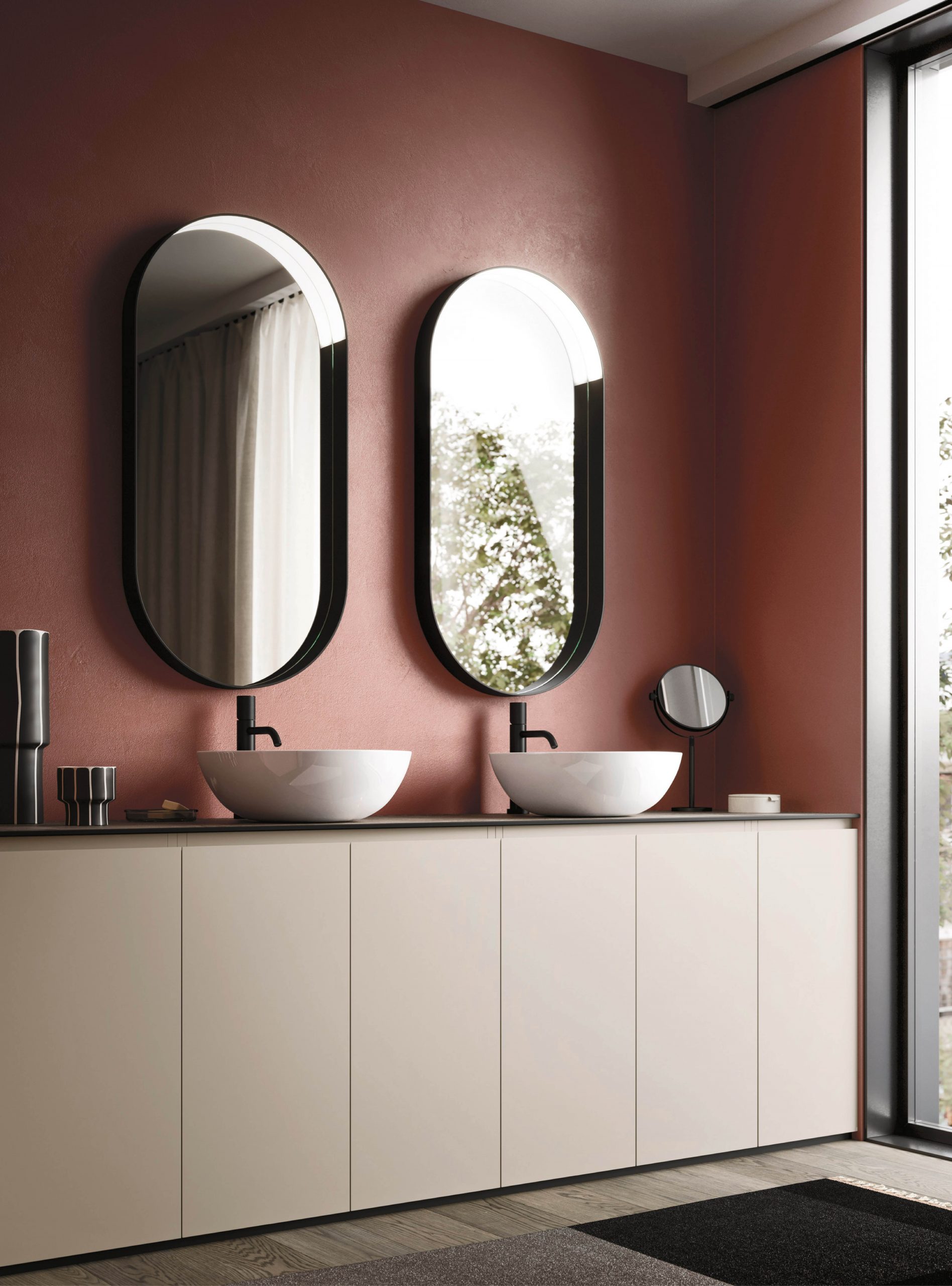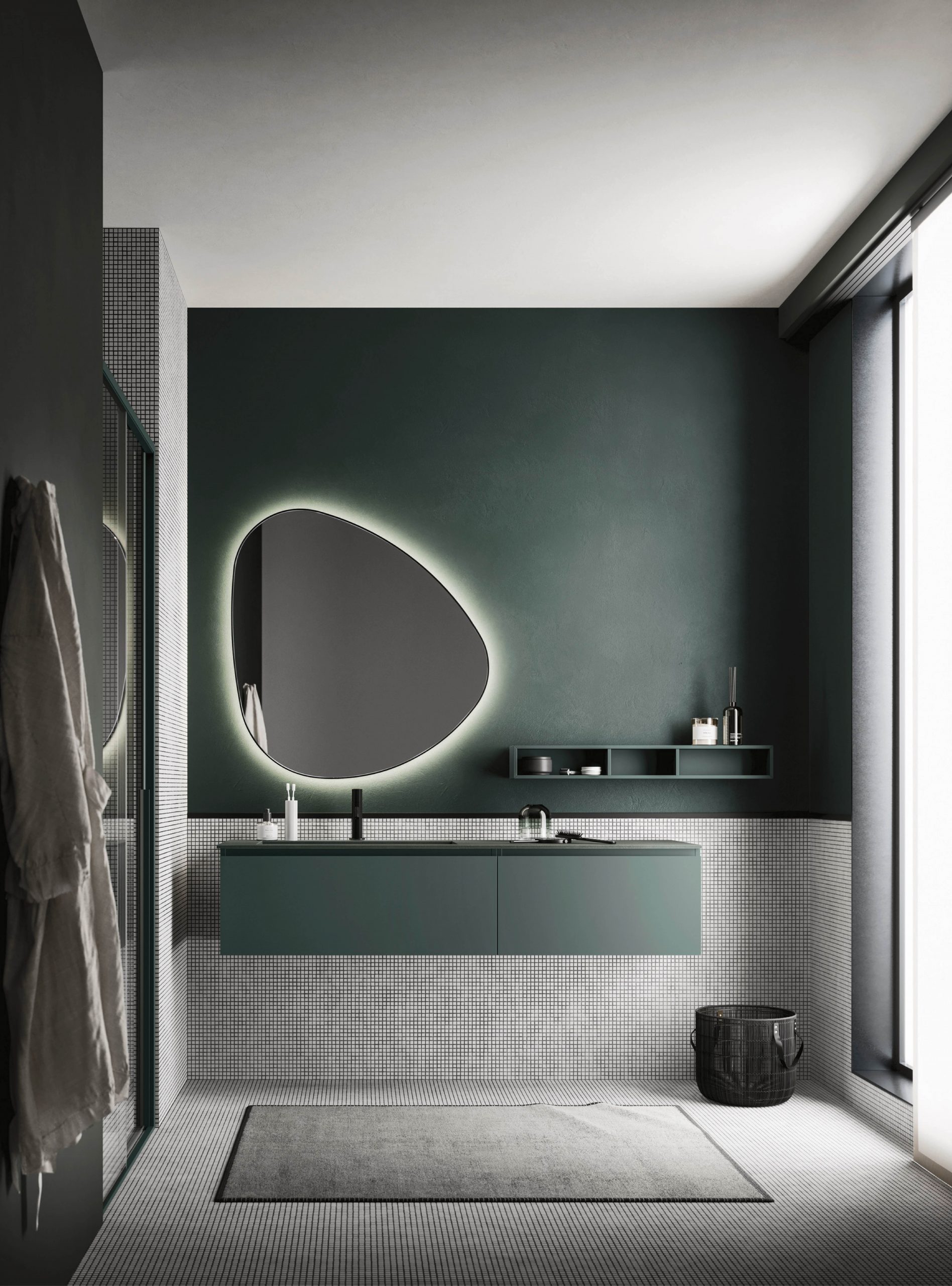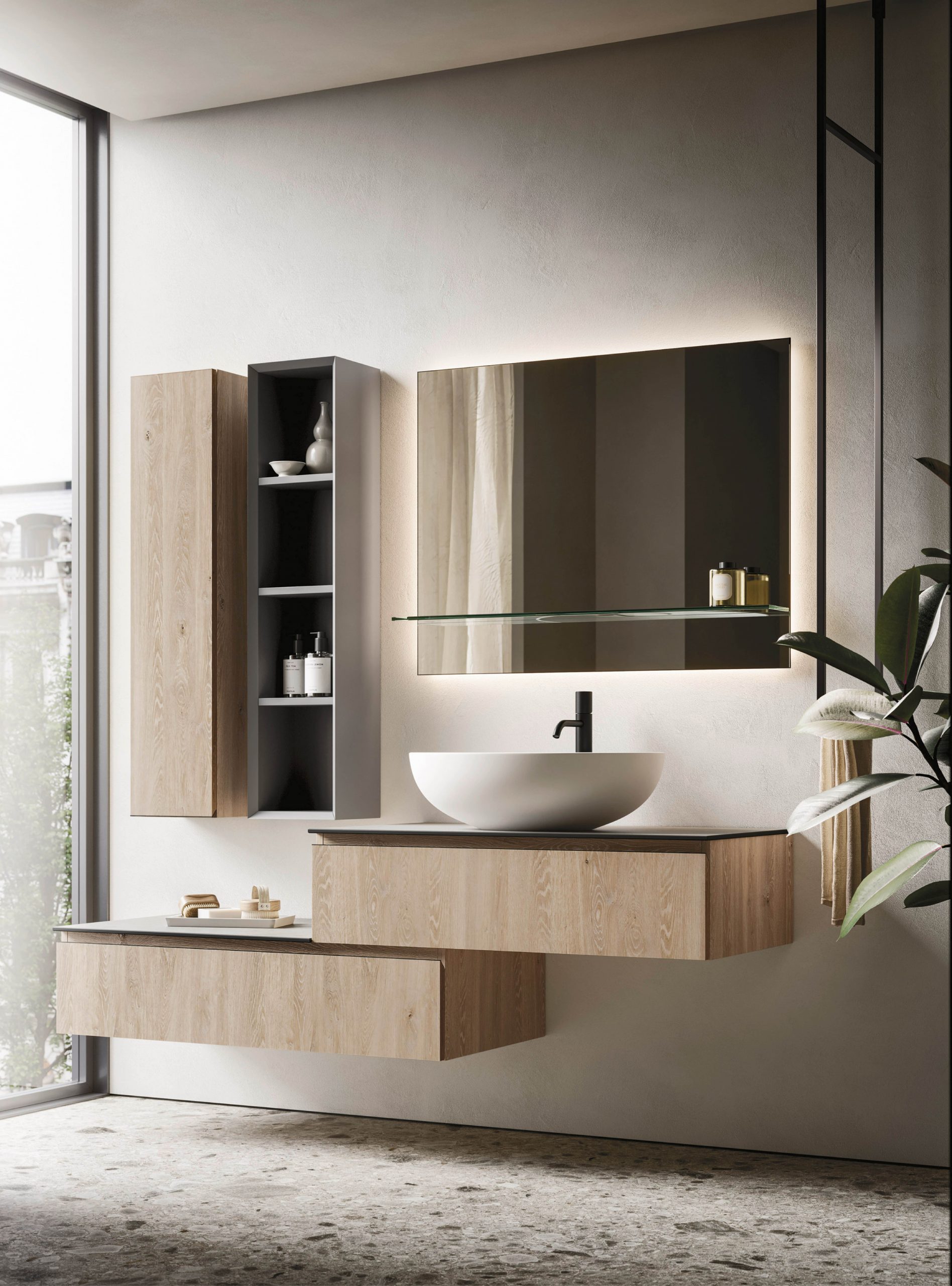 The Ho.Me plus family is enriched with a new version. Ho.Me plus 45° is characterized by a door with a 45° cut, which becomes the comfortable integrated grip. The possible finishes range from melamine to coloured melamine and matt lacquer finishes to suit every style and personality.