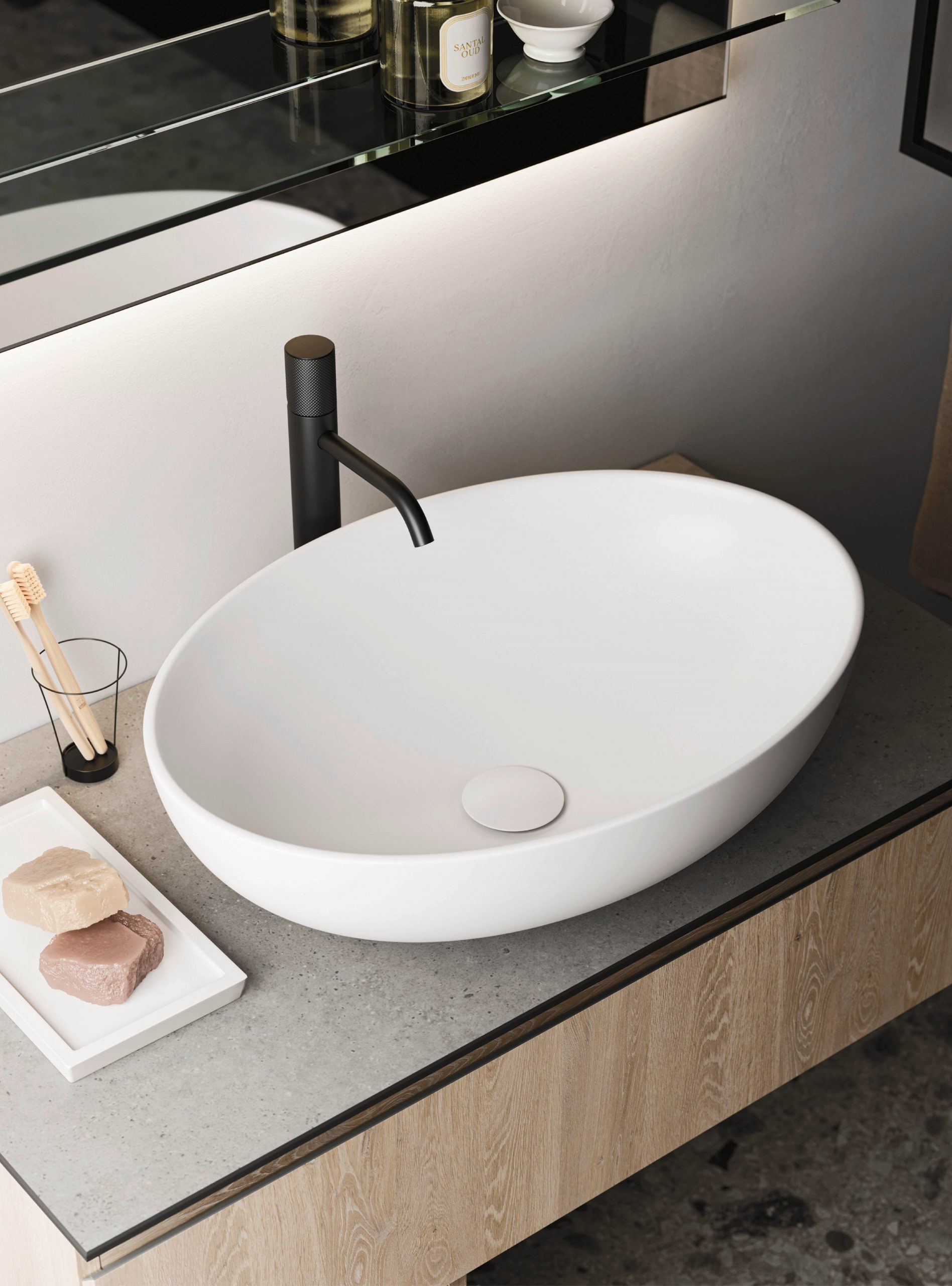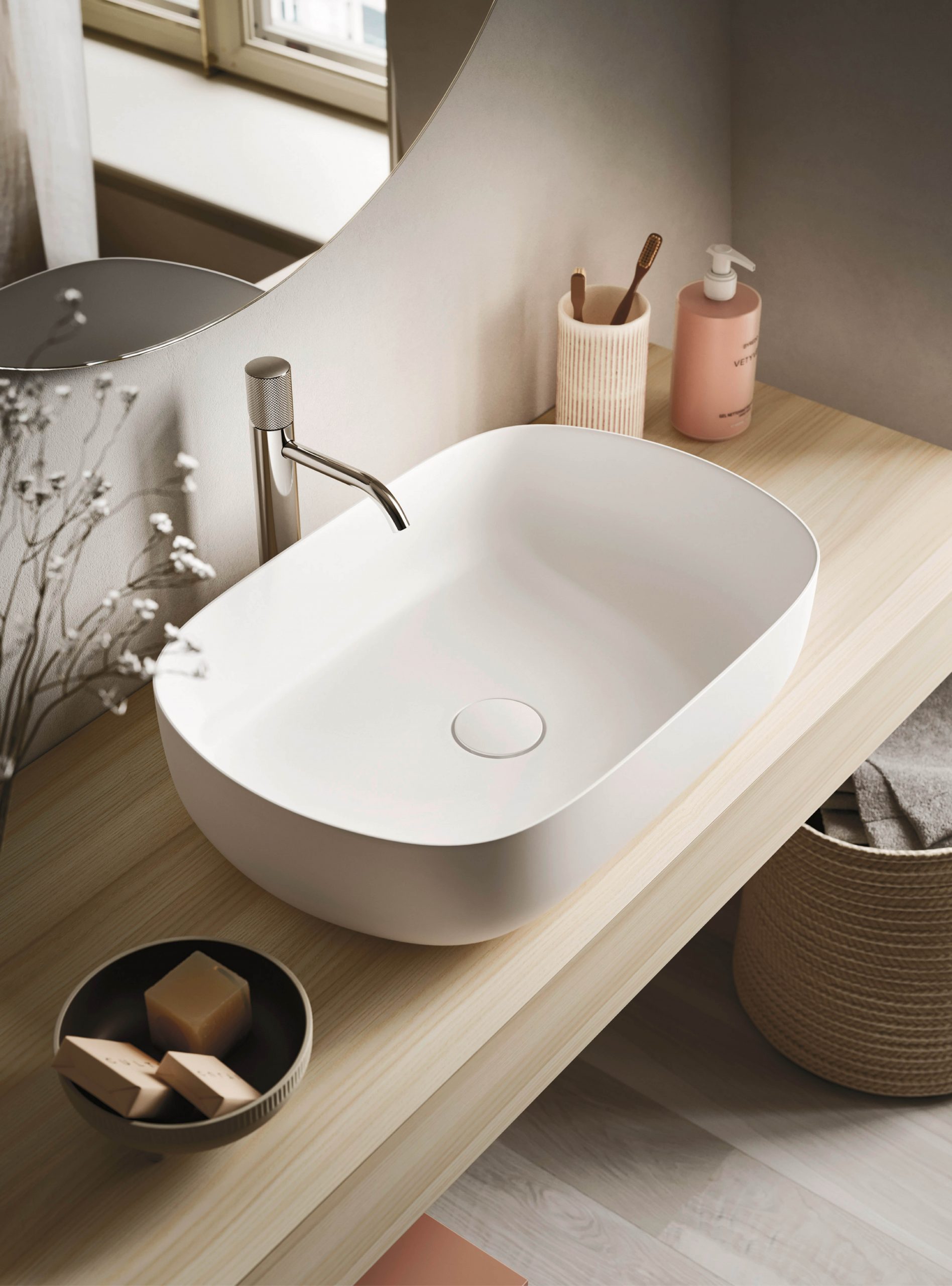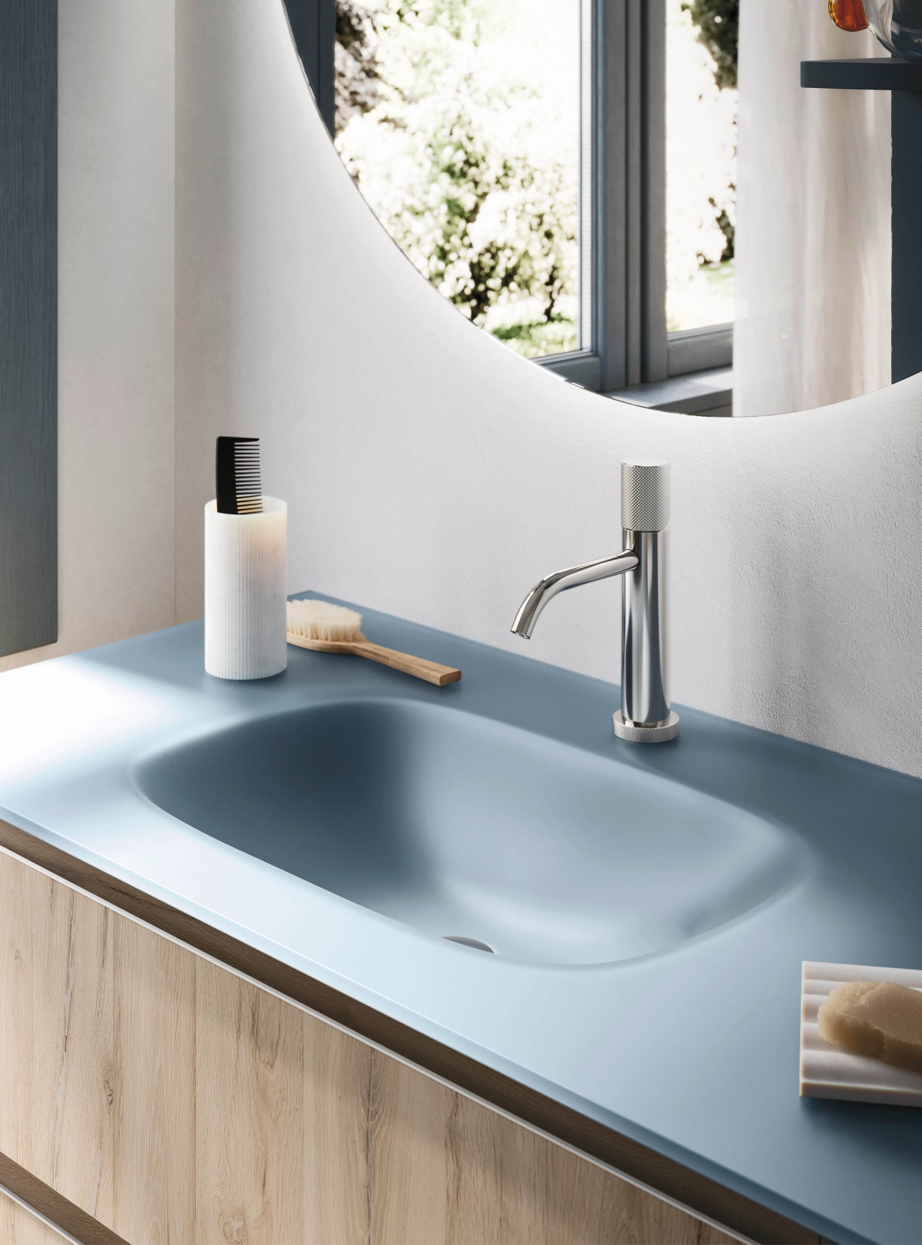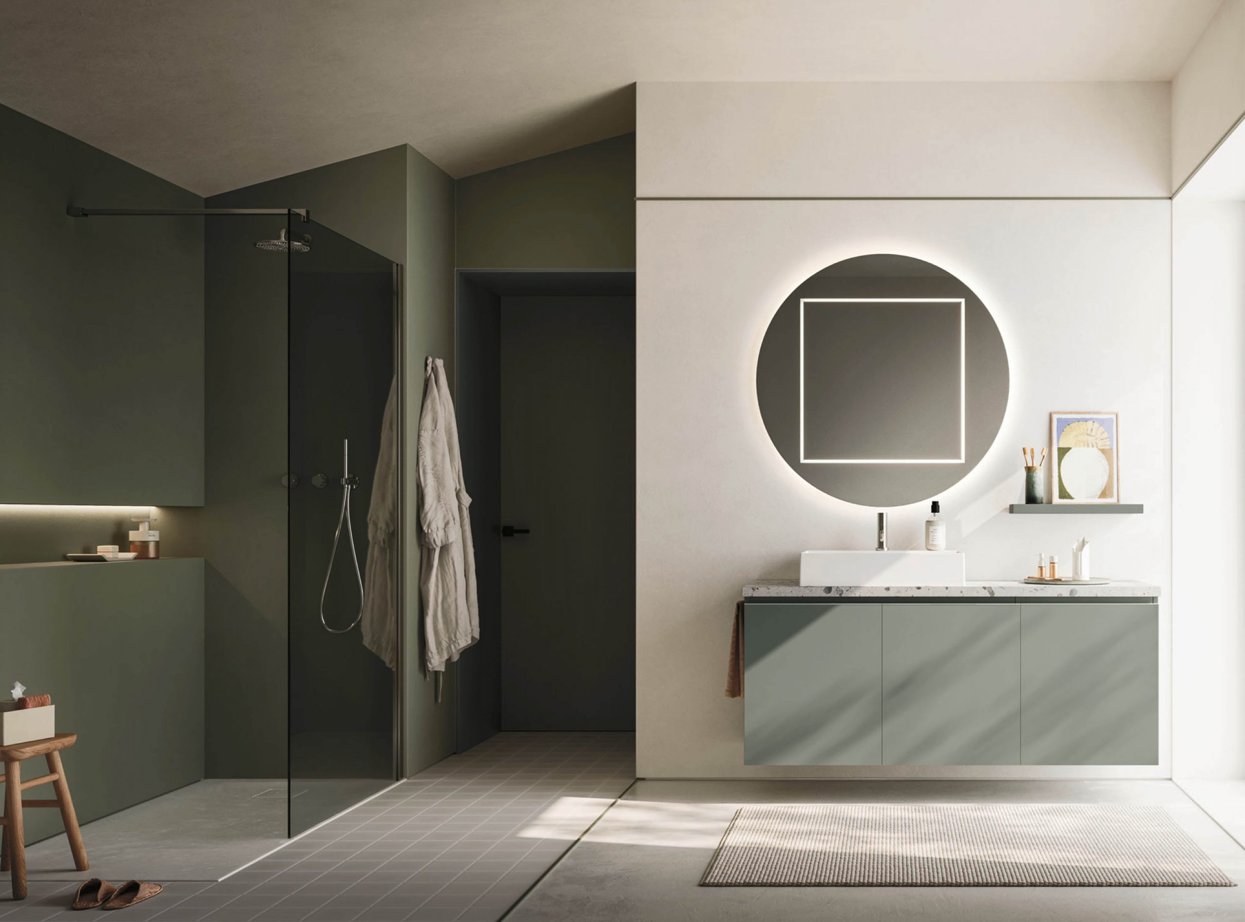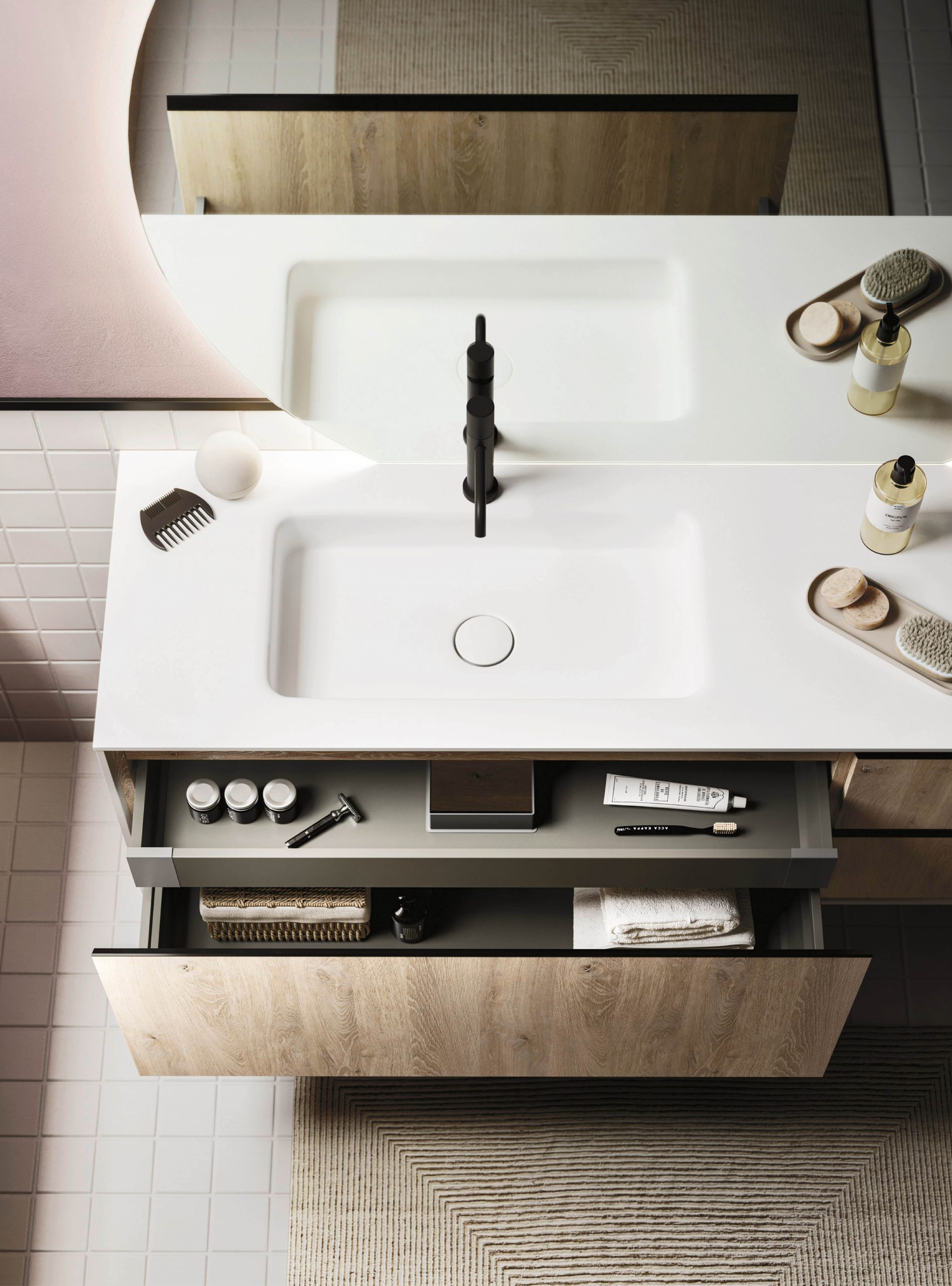 The Ho.Me plus family is enriched with a new version. Ho.Me plus 45° is characterized by a door with a 45° cut, which becomes the comfortable integrated grip. The possible finishes range from melamine to coloured melamine and matt lacquer finishes to suit every style and personality.