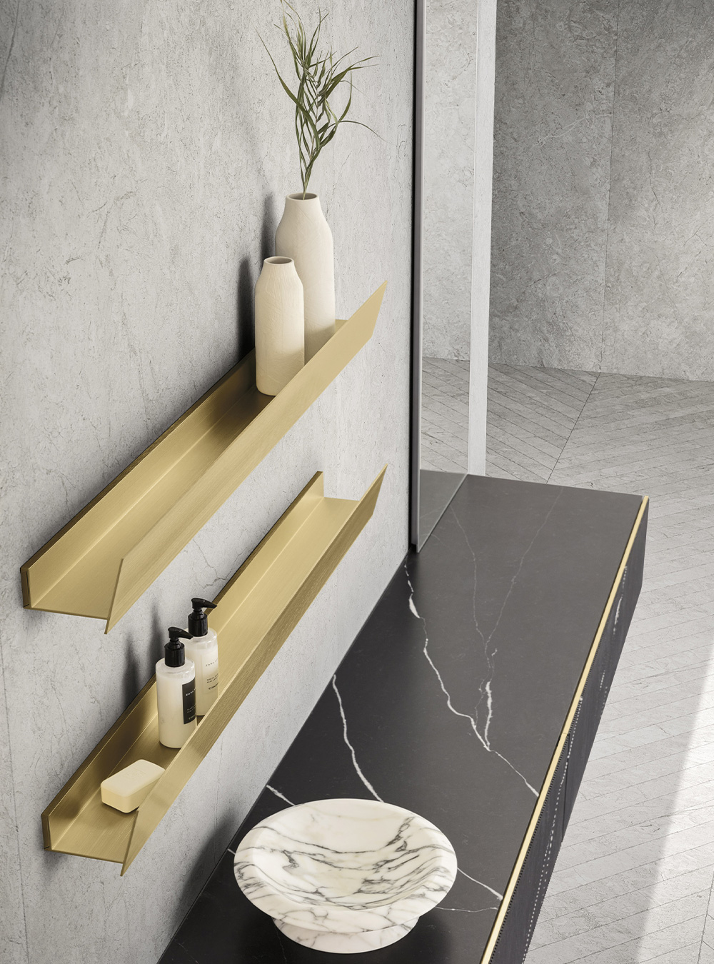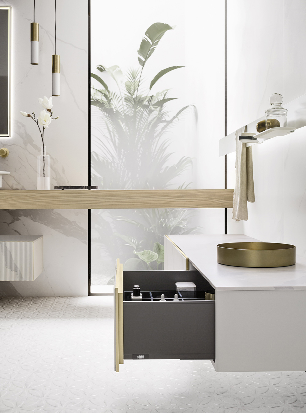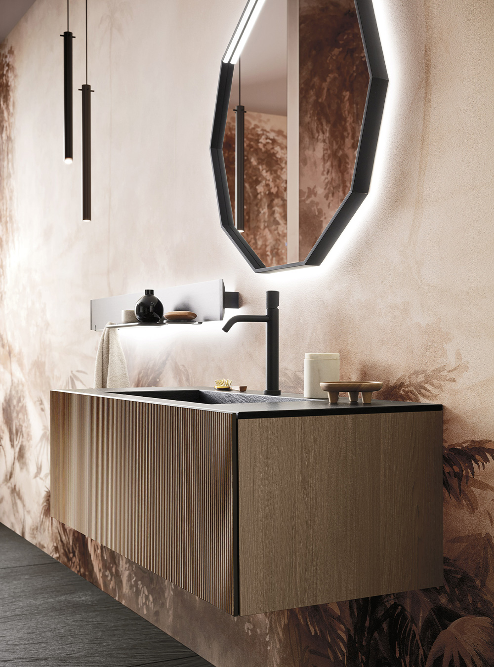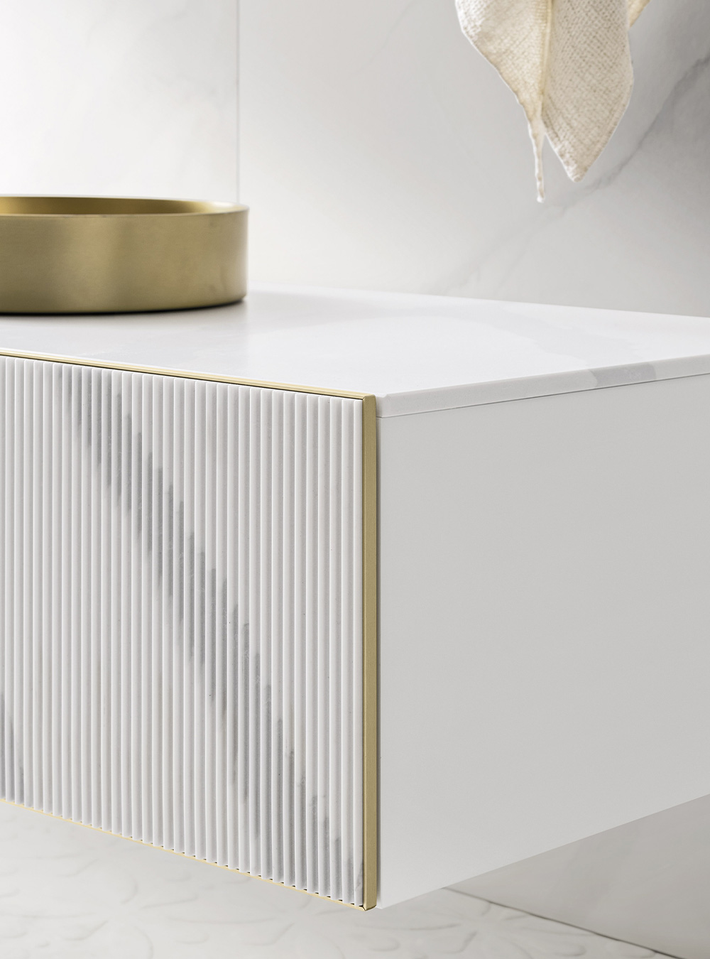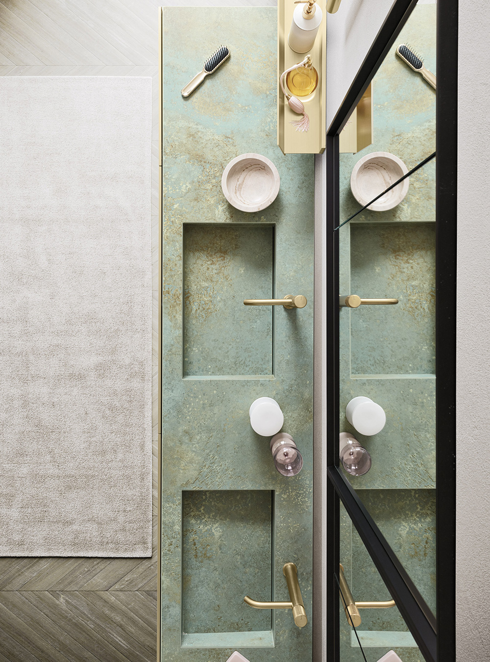 A precious frame in a brushed finish which encircles unusual tactile and visual effects. The warmth of wood, the charm of ceramics and the prestige of marble are exhalted by innovative manufacturing processes. Thanks to luxor, the space is filled with pure beauty, without compromise nor comparisons.