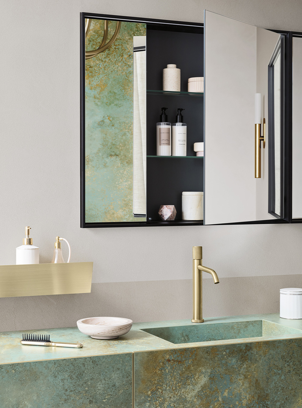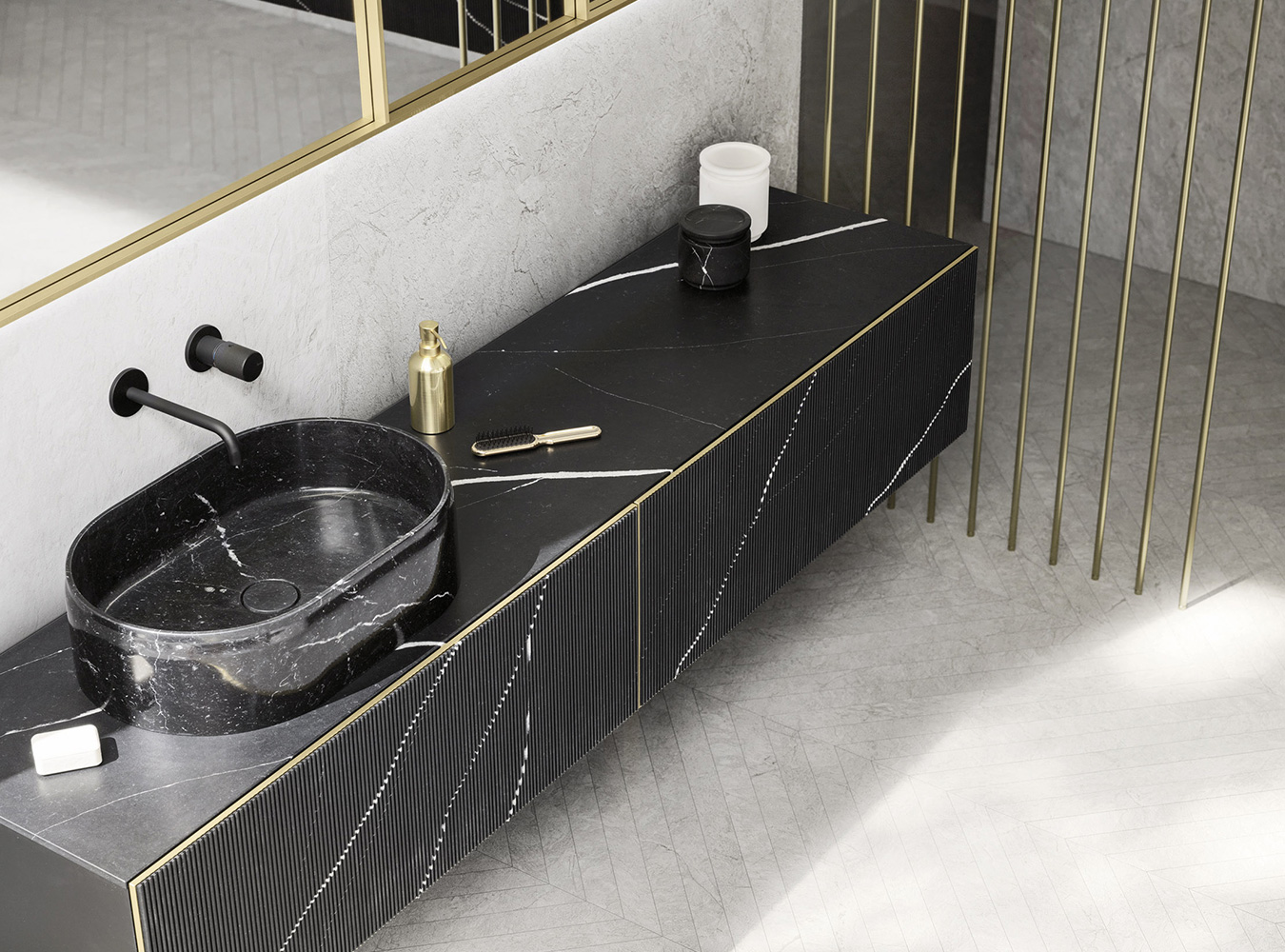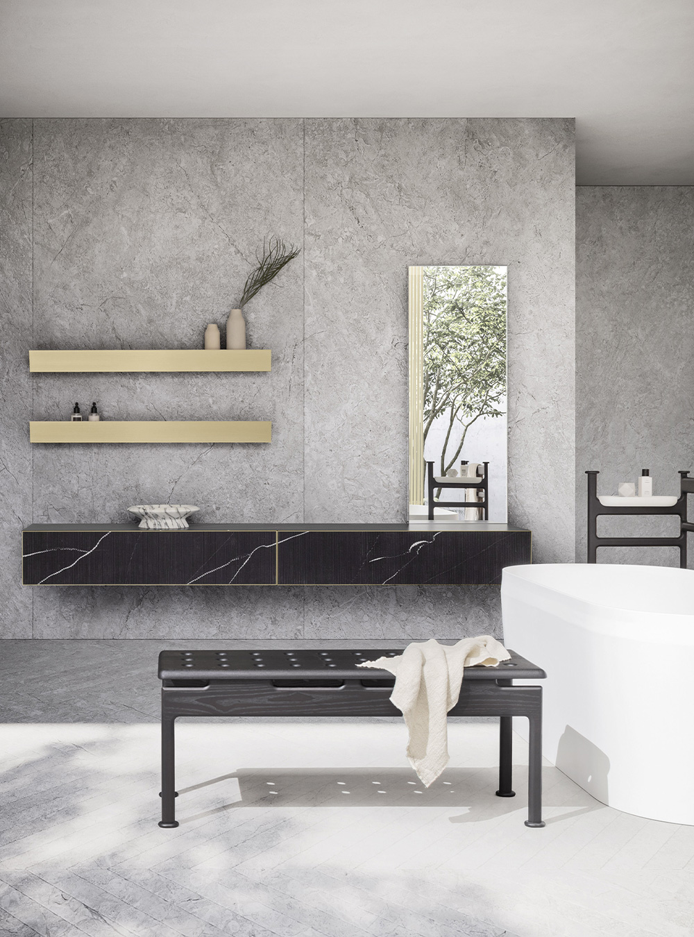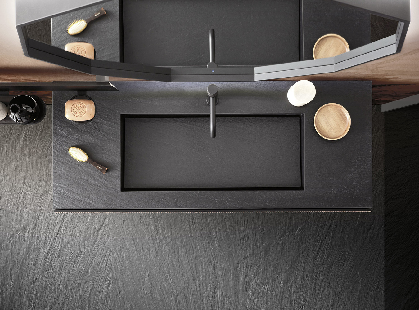 A precious frame in a brushed finish which encircles unusual tactile and visual effects. The warmth of wood, the charm of ceramics and the prestige of marble are exhalted by innovative manufacturing processes. Thanks to luxor, the space is filled with pure beauty, without compromise nor comparisons.