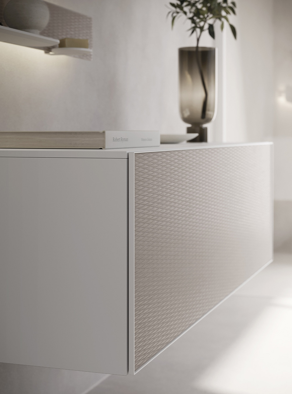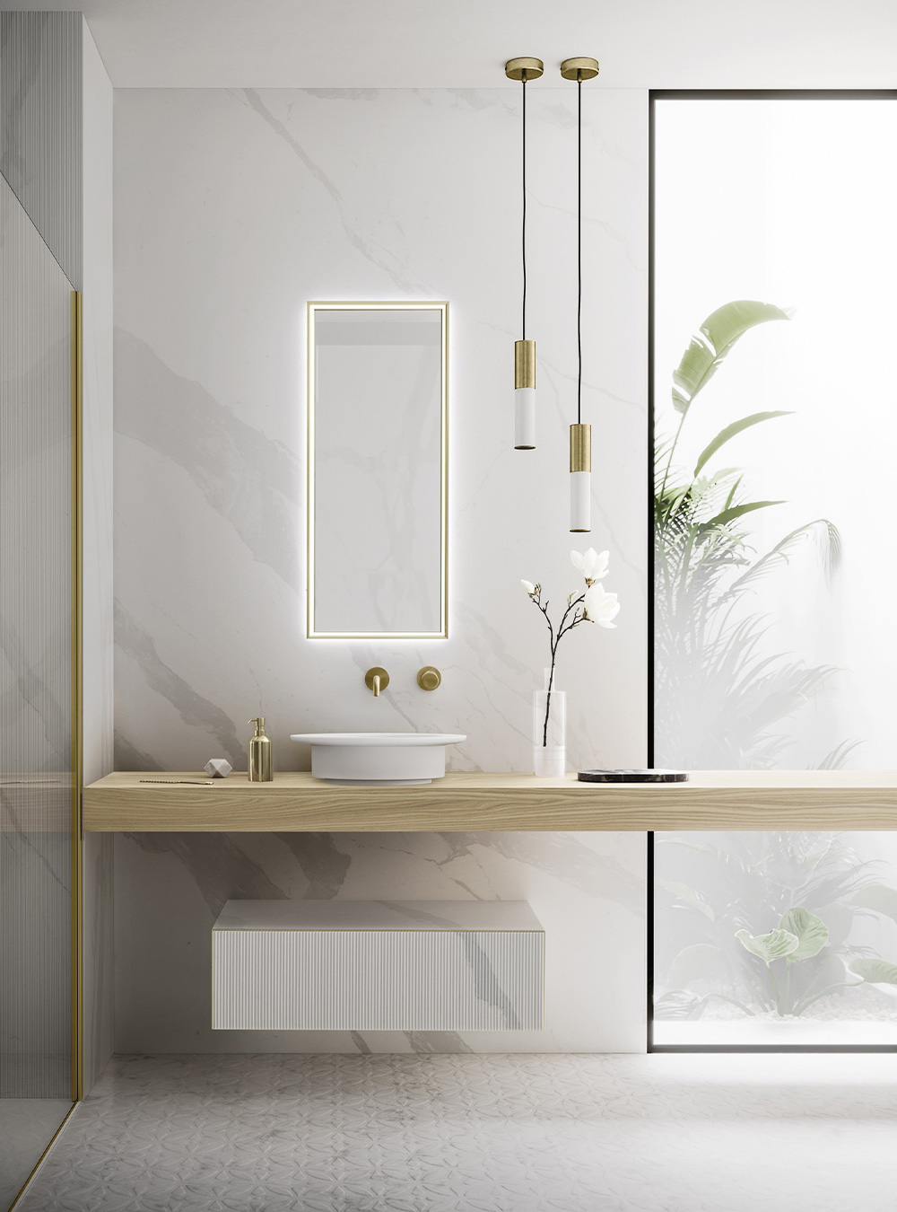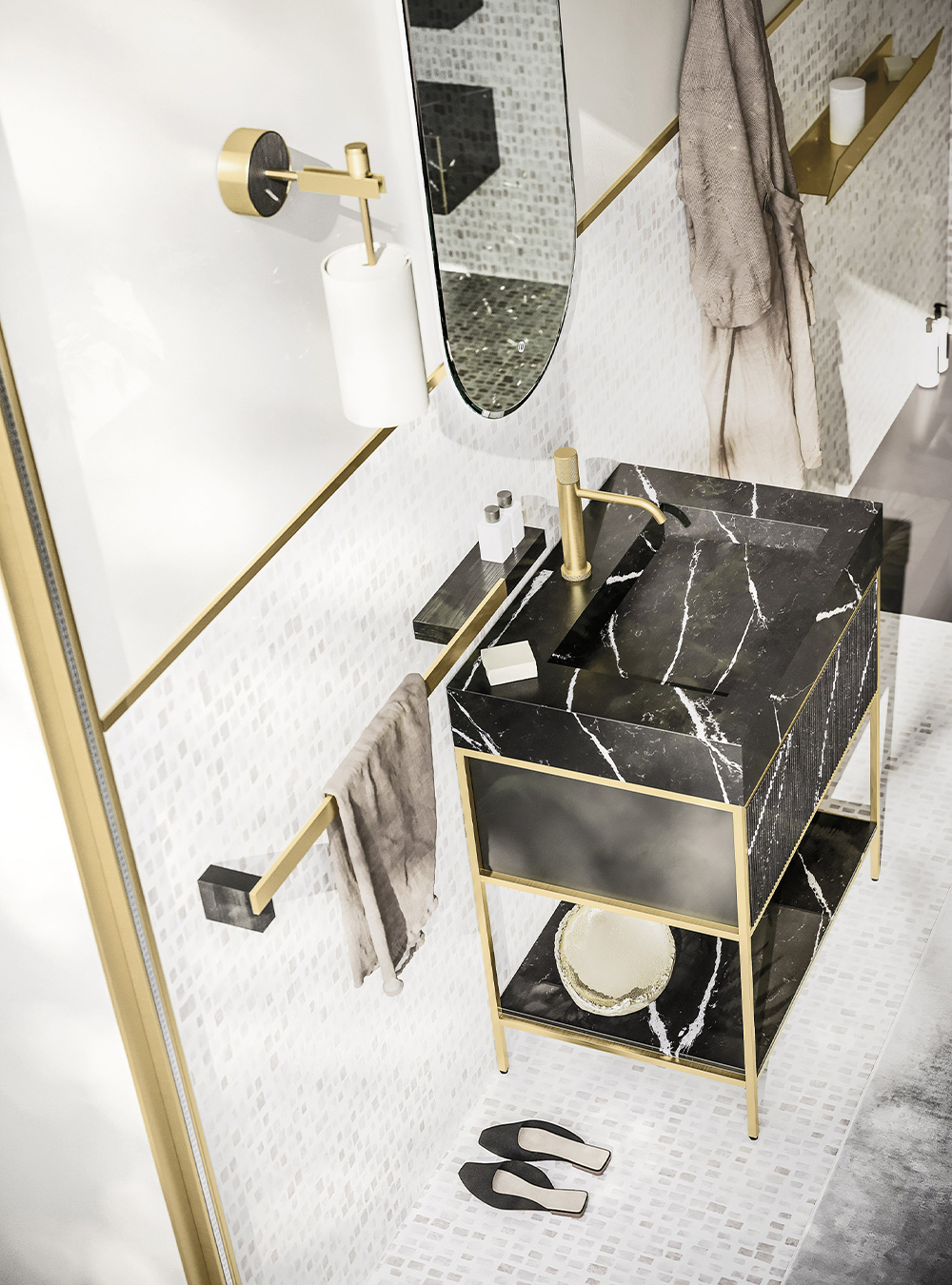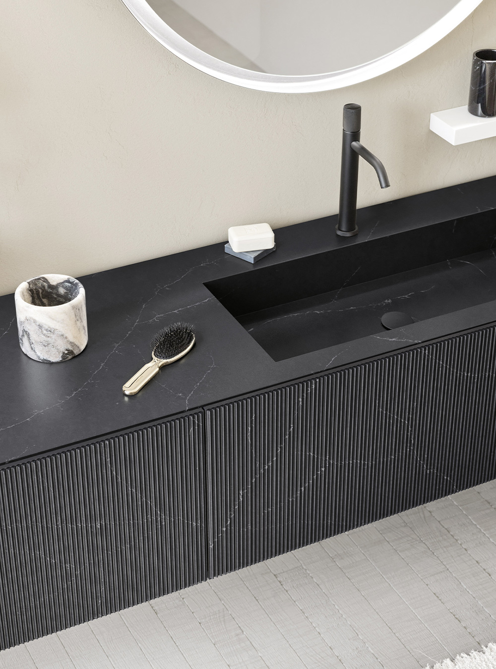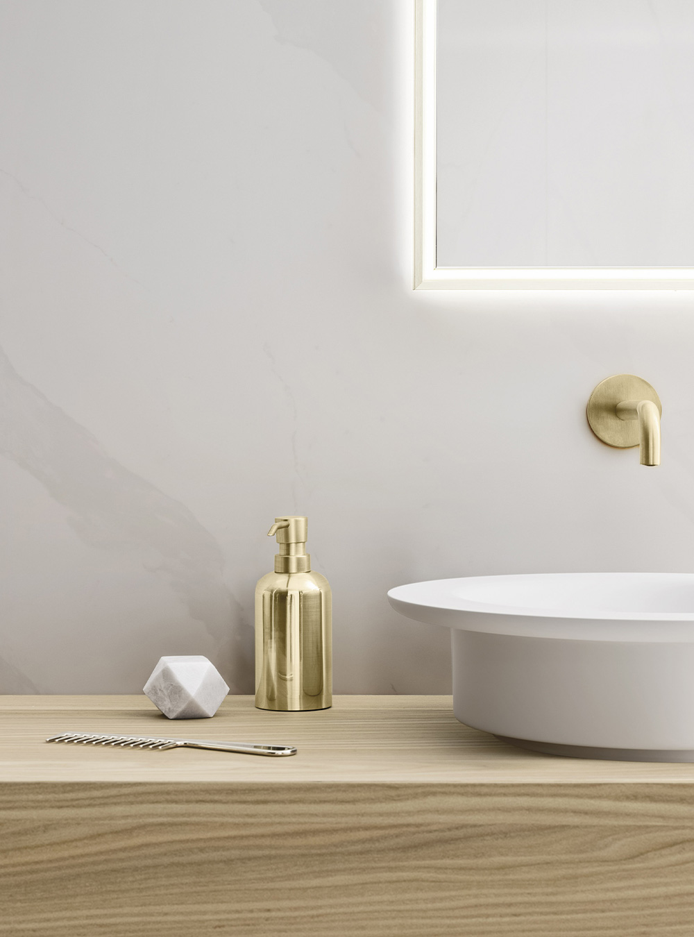 A precious frame in a brushed finish which encircles unusual tactile and visual effects. The warmth of wood, the charm of ceramics and the prestige of marble are exhalted by innovative manufacturing processes. Thanks to luxor, the space is filled with pure beauty, without compromise nor comparisons.