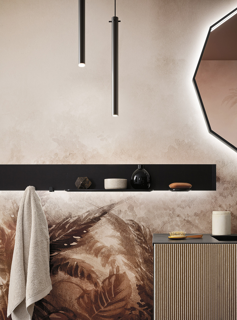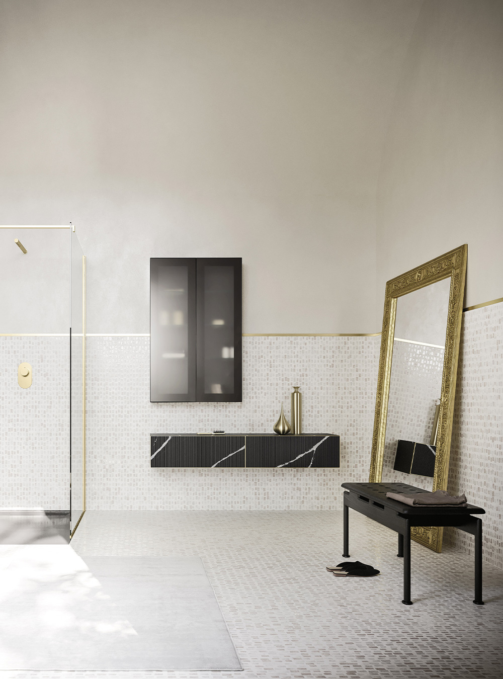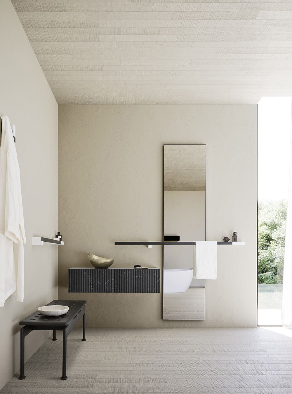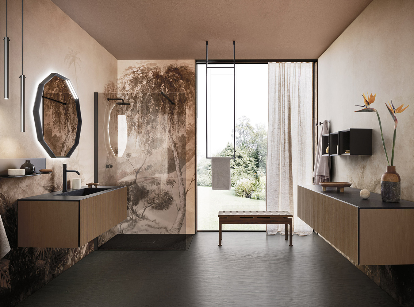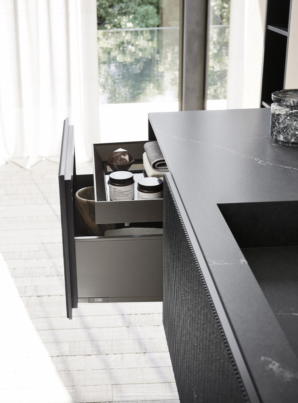 A precious frame in a brushed finish which encircles unusual tactile and visual effects. The warmth of wood, the charm of ceramics and the prestige of marble are exhalted by innovative manufacturing processes. Thanks to luxor, the space is filled with pure beauty, without compromise nor comparisons.