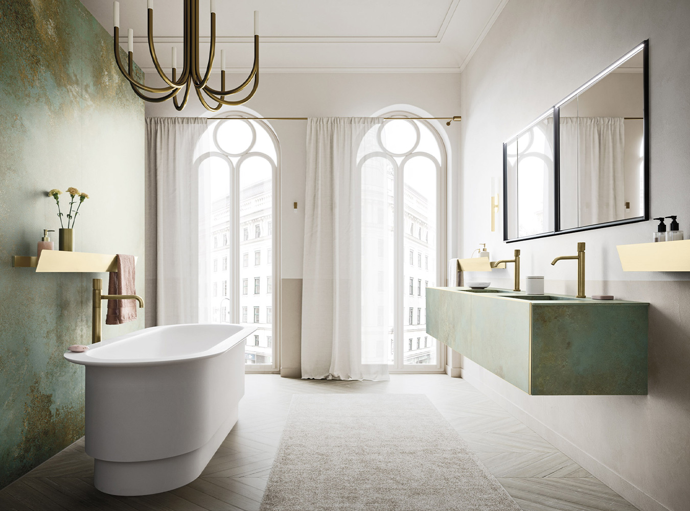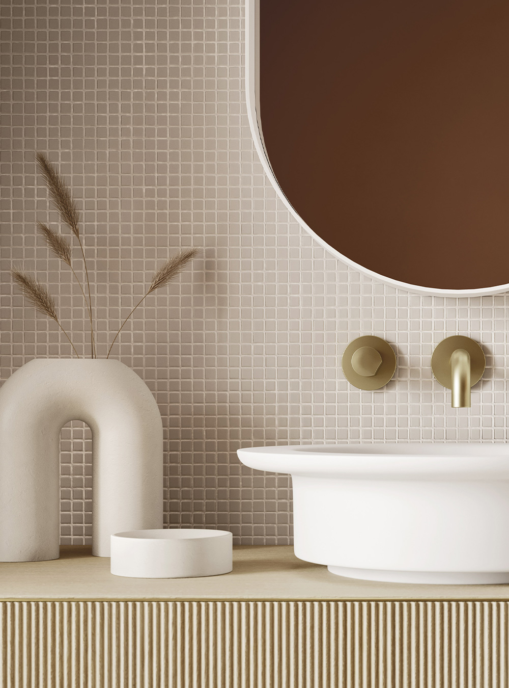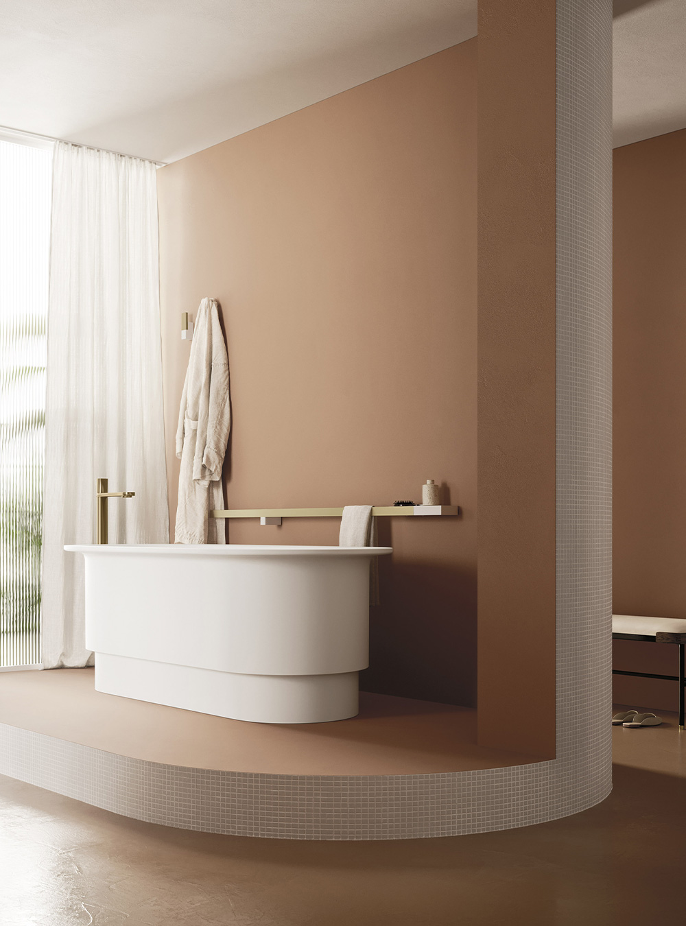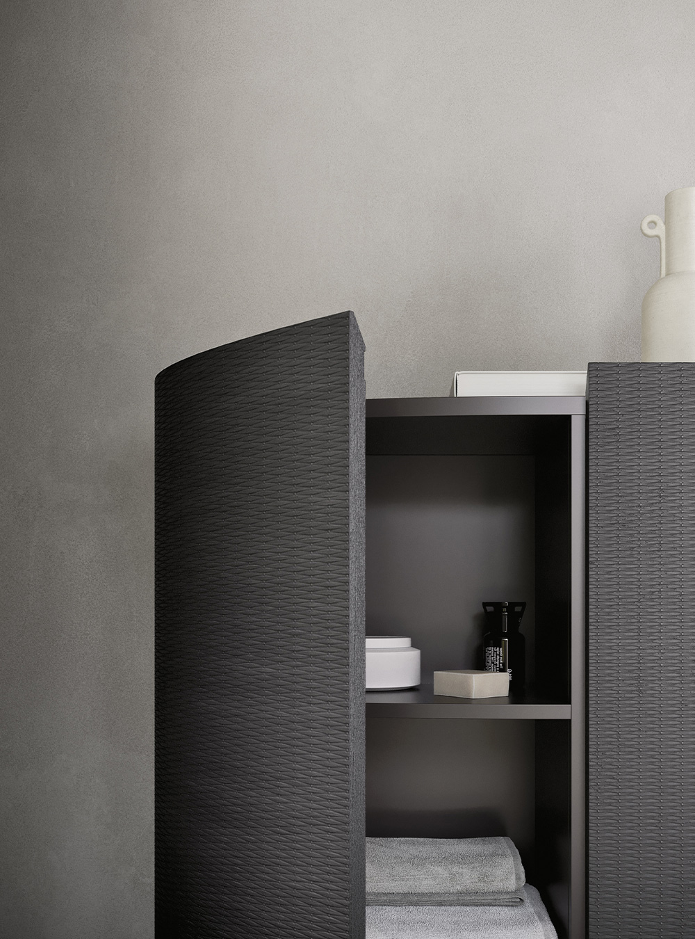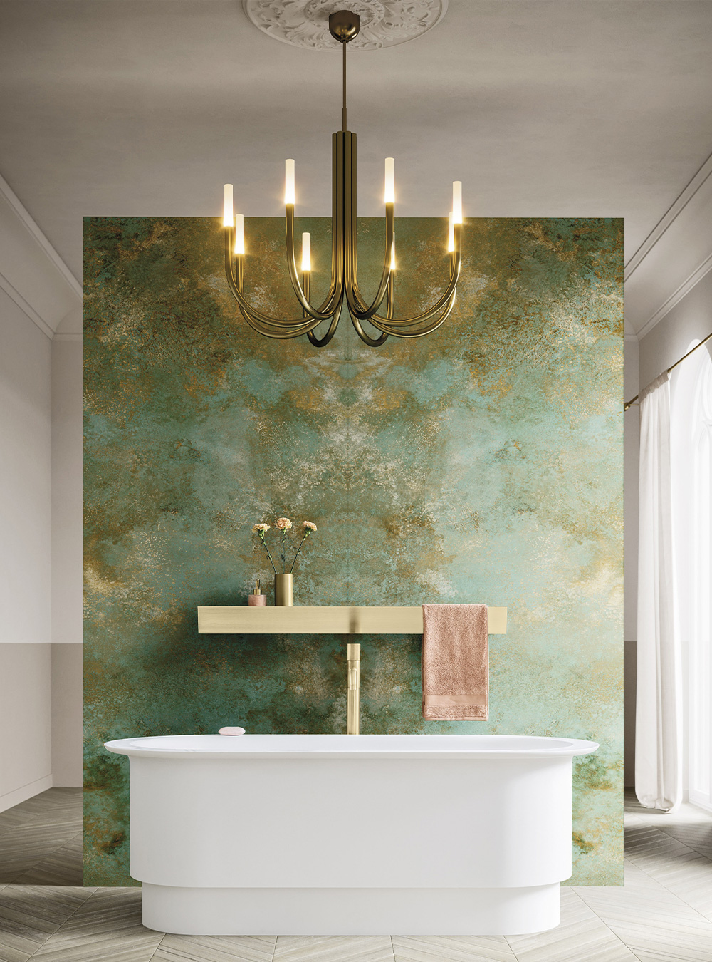 A precious frame in a brushed finish which encircles unusual tactile and visual effects. The warmth of wood, the charm of ceramics and the prestige of marble are exhalted by innovative manufacturing processes. Thanks to luxor, the space is filled with pure beauty, without compromise nor comparisons.