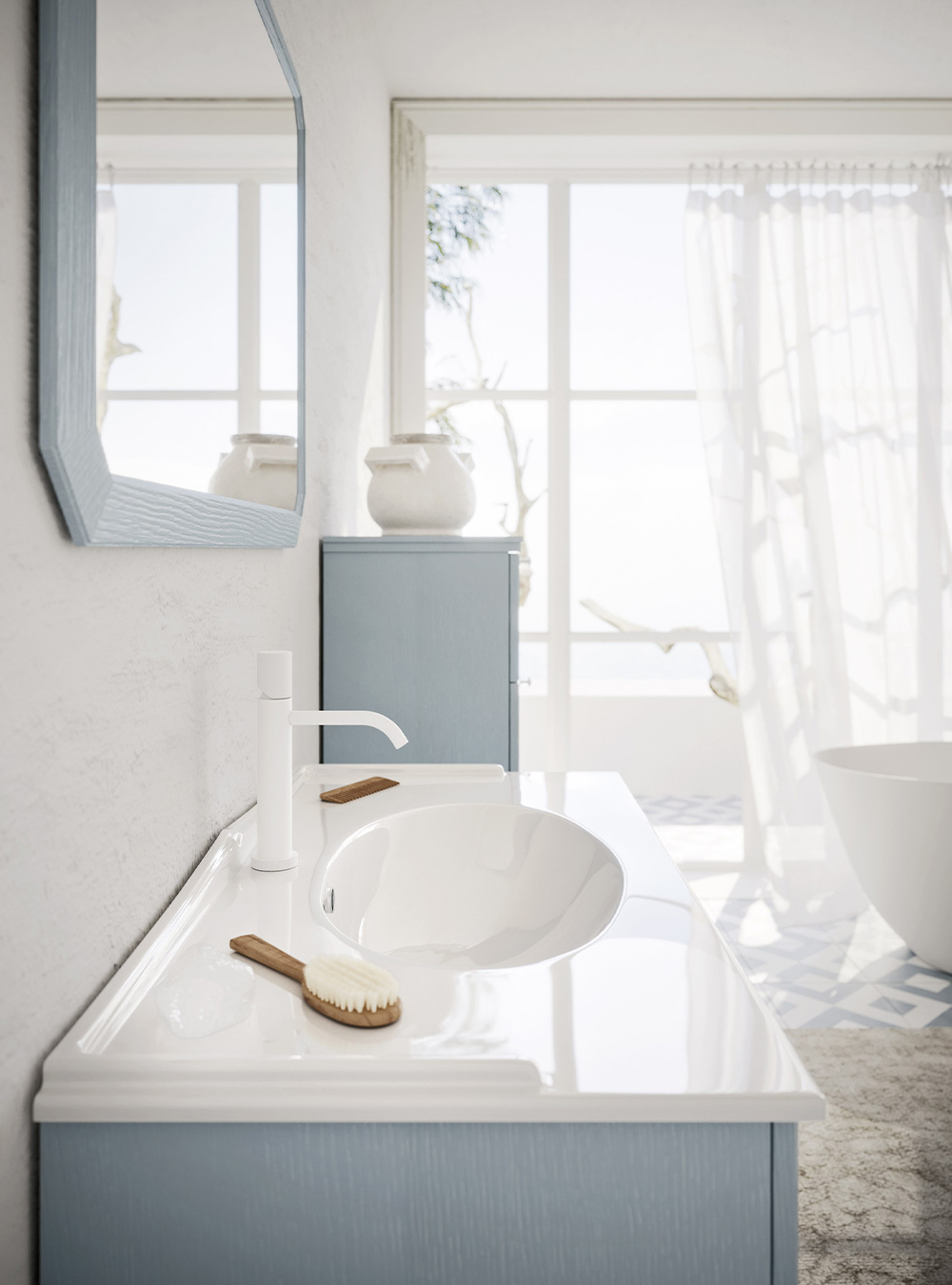 The Maison collection reinterprets past stylistic canons in a contemporary key, allowing us to relive the atmosphere of times gone by with traditional bathroom furniture. The framed door in solid wood veneer, the plinth and shaped feet are the feature elements of this collection, available in various finishes in pastel ash. Shabby-chic style finds expression in a multitude of elements that furnish every bathroom with class and style.