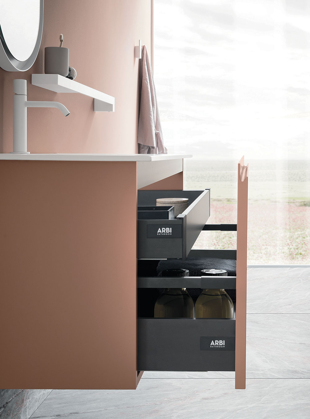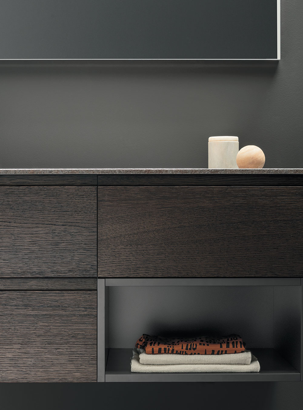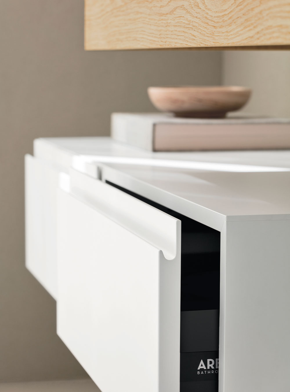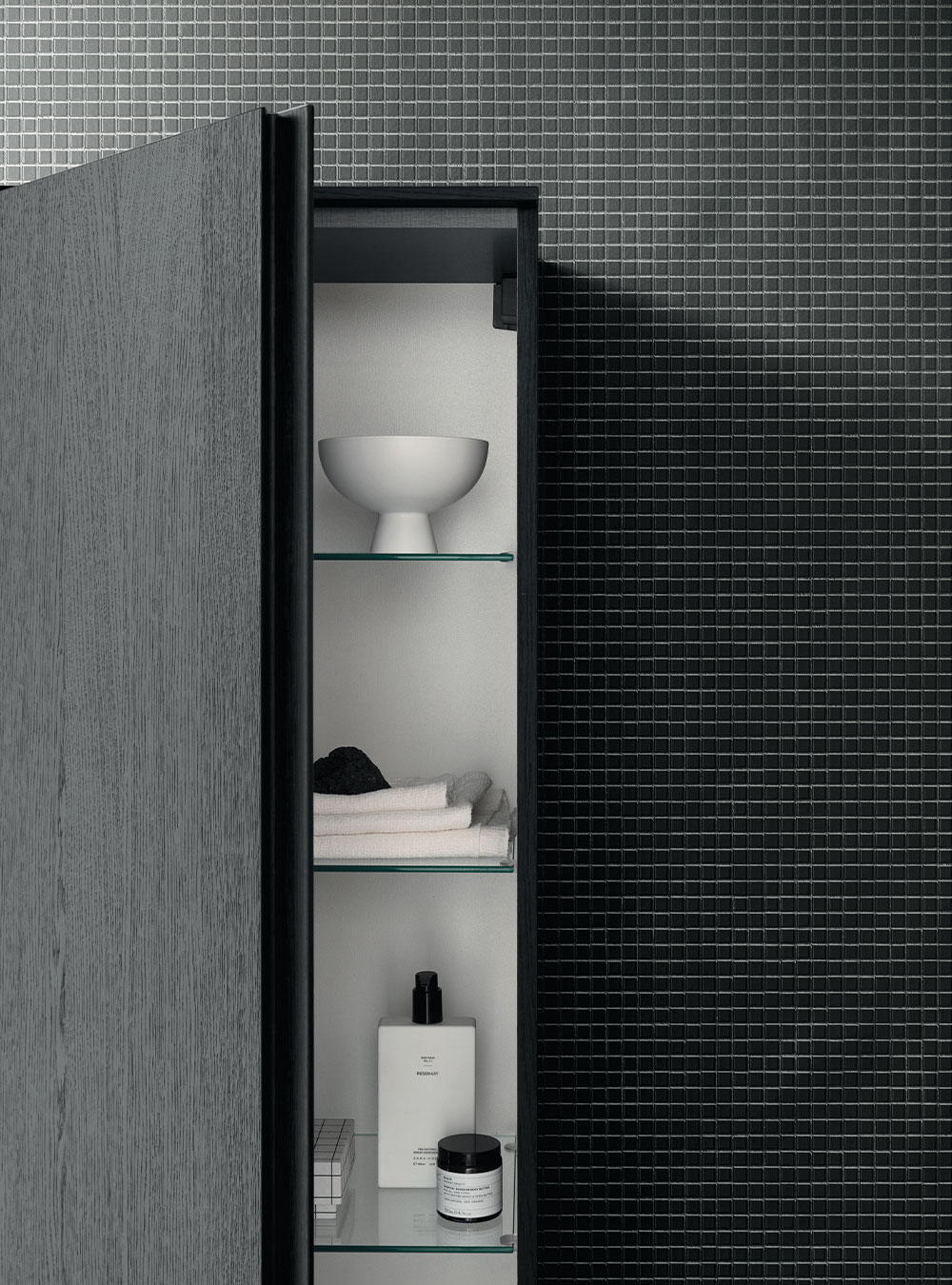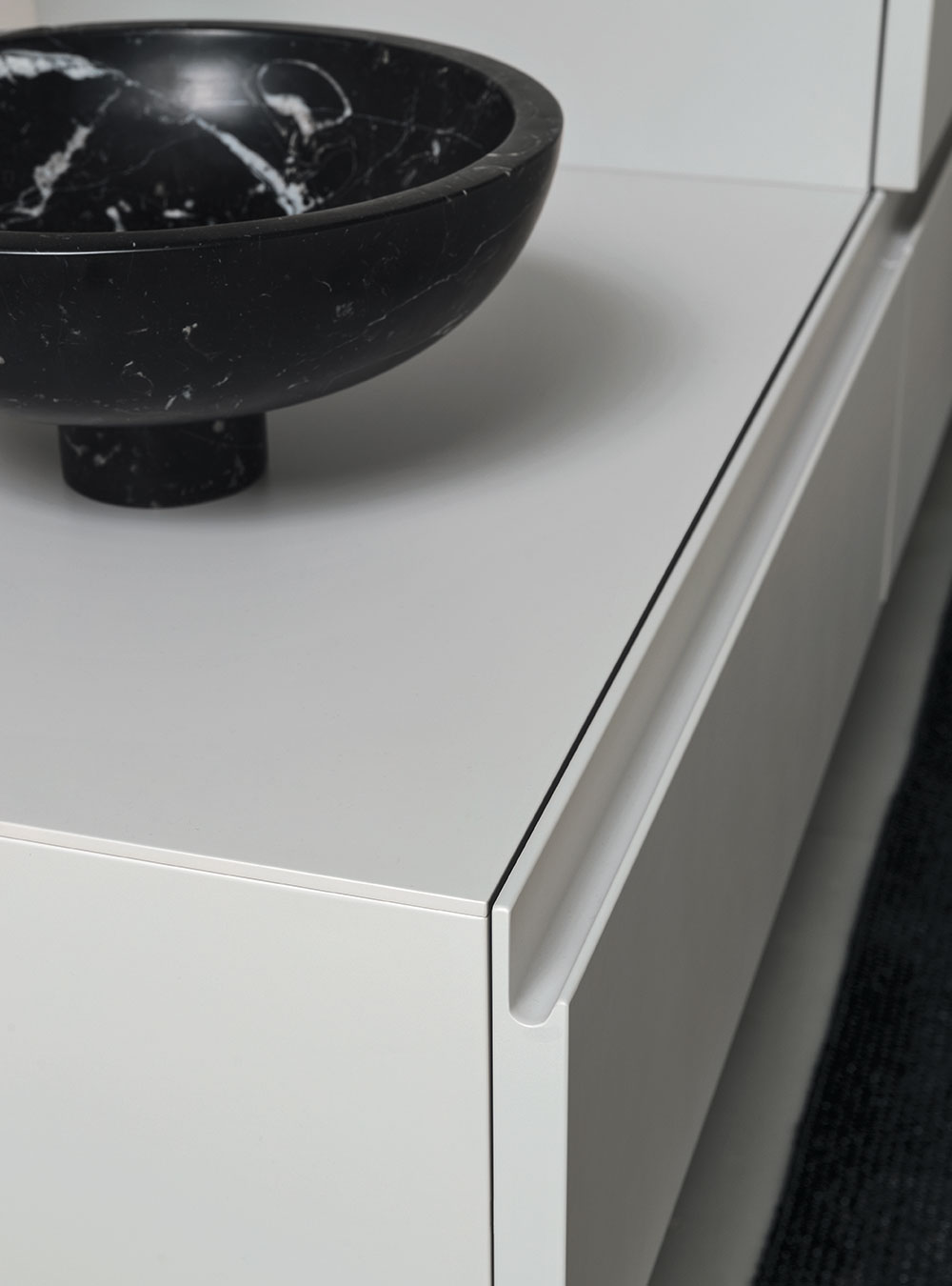 Street bathroom furniture features a comfortable grip integrated into the door, an aesthetic and functional element that is a mainstay of the collection. Practicality and refinement live in perfect harmony to create simple solutions and more sophisticated bathroom spaces, with that exclusive made-in-Italy quality. Simple, timeless shapes come together with the wide range of modular units in the collection, combining refinement and elegance and easily adapting to any bathroom space.