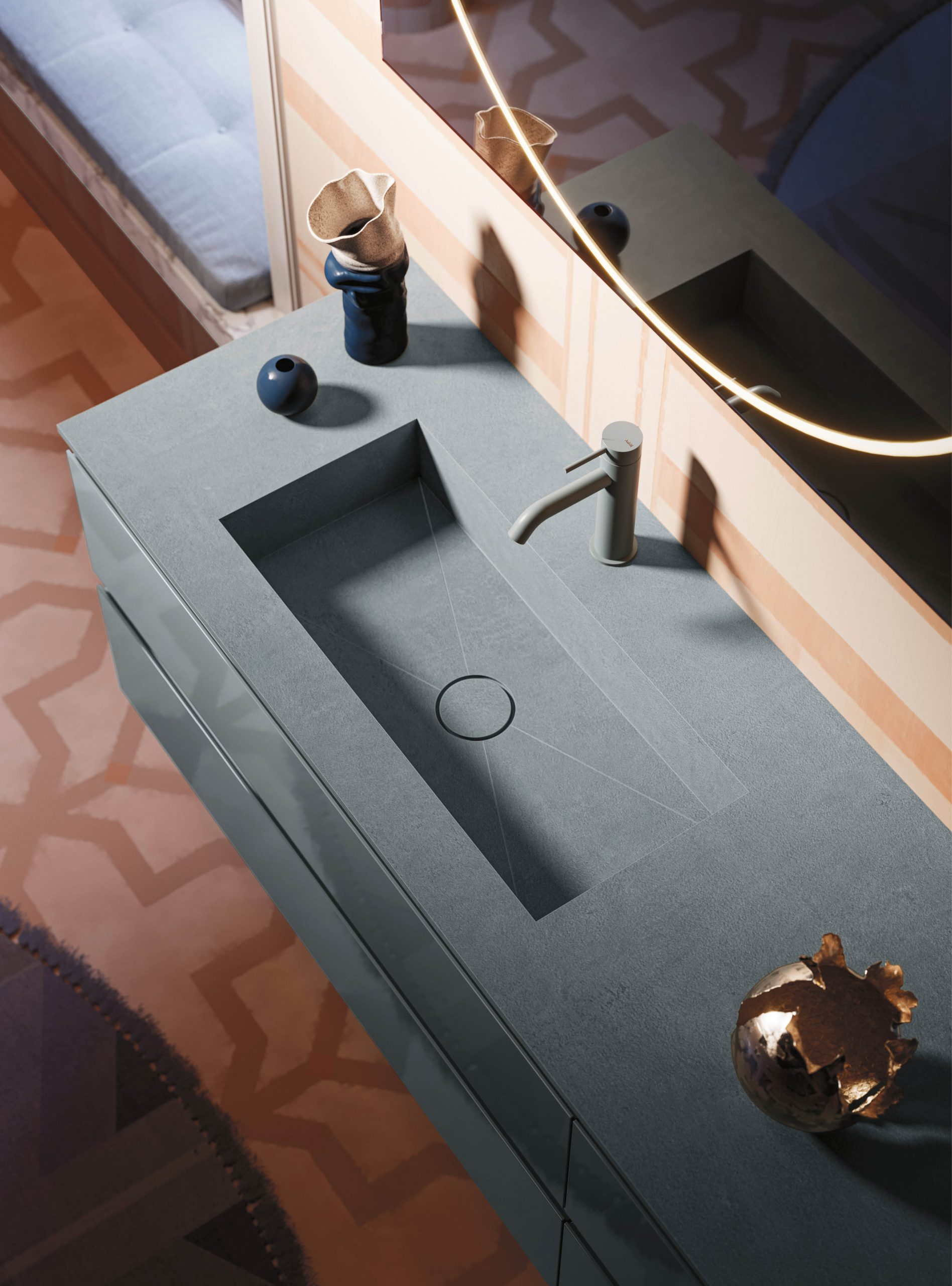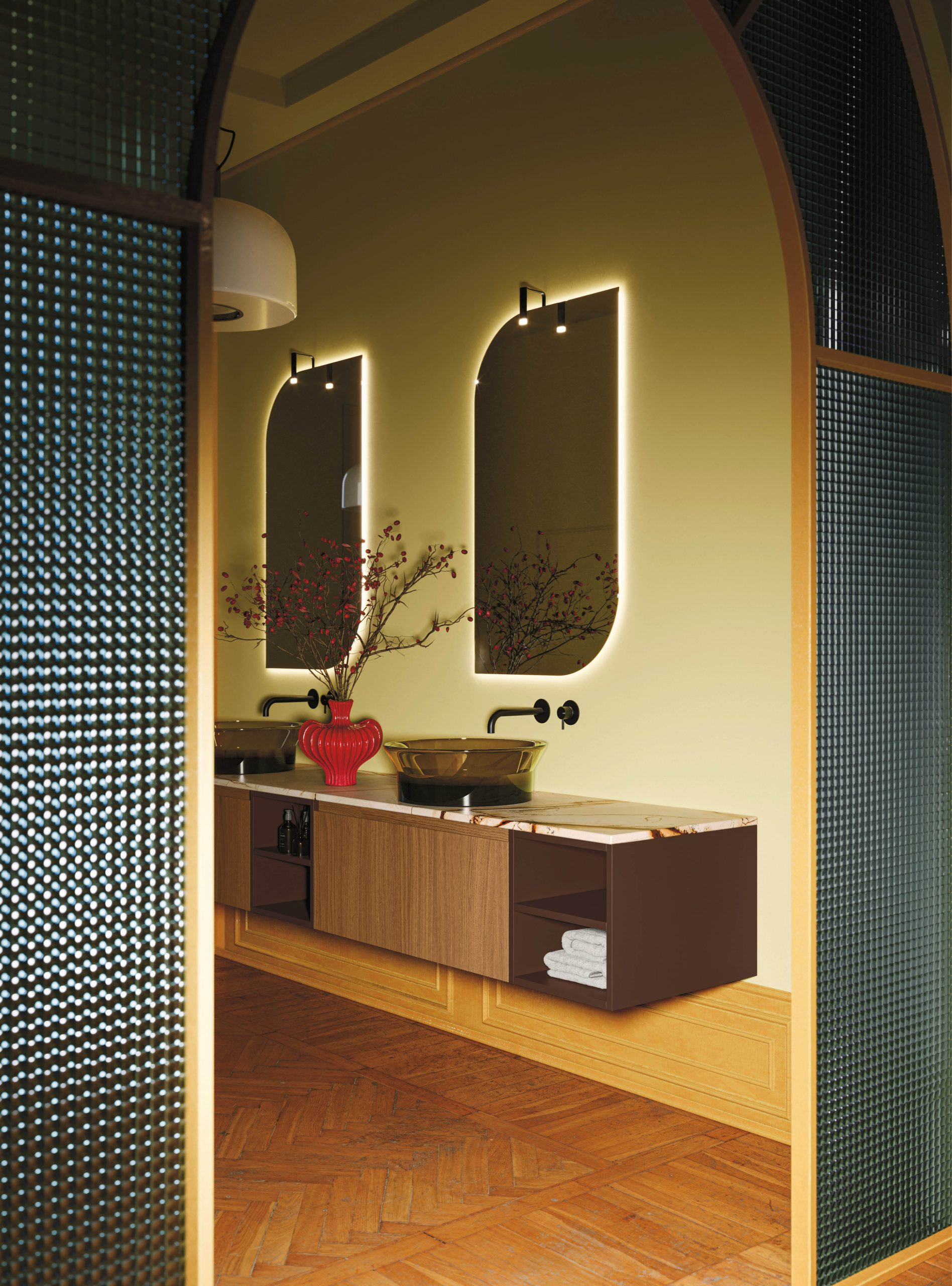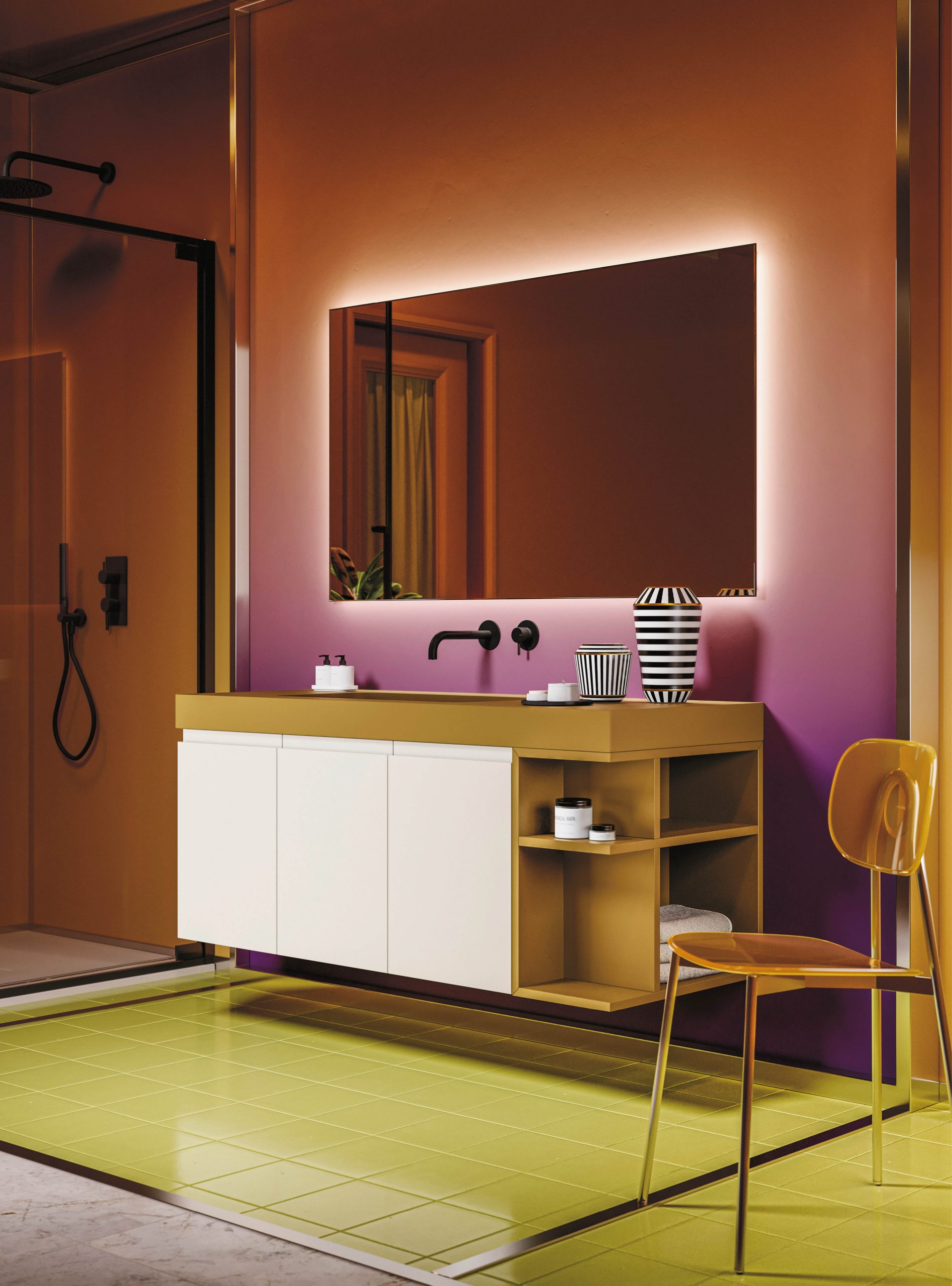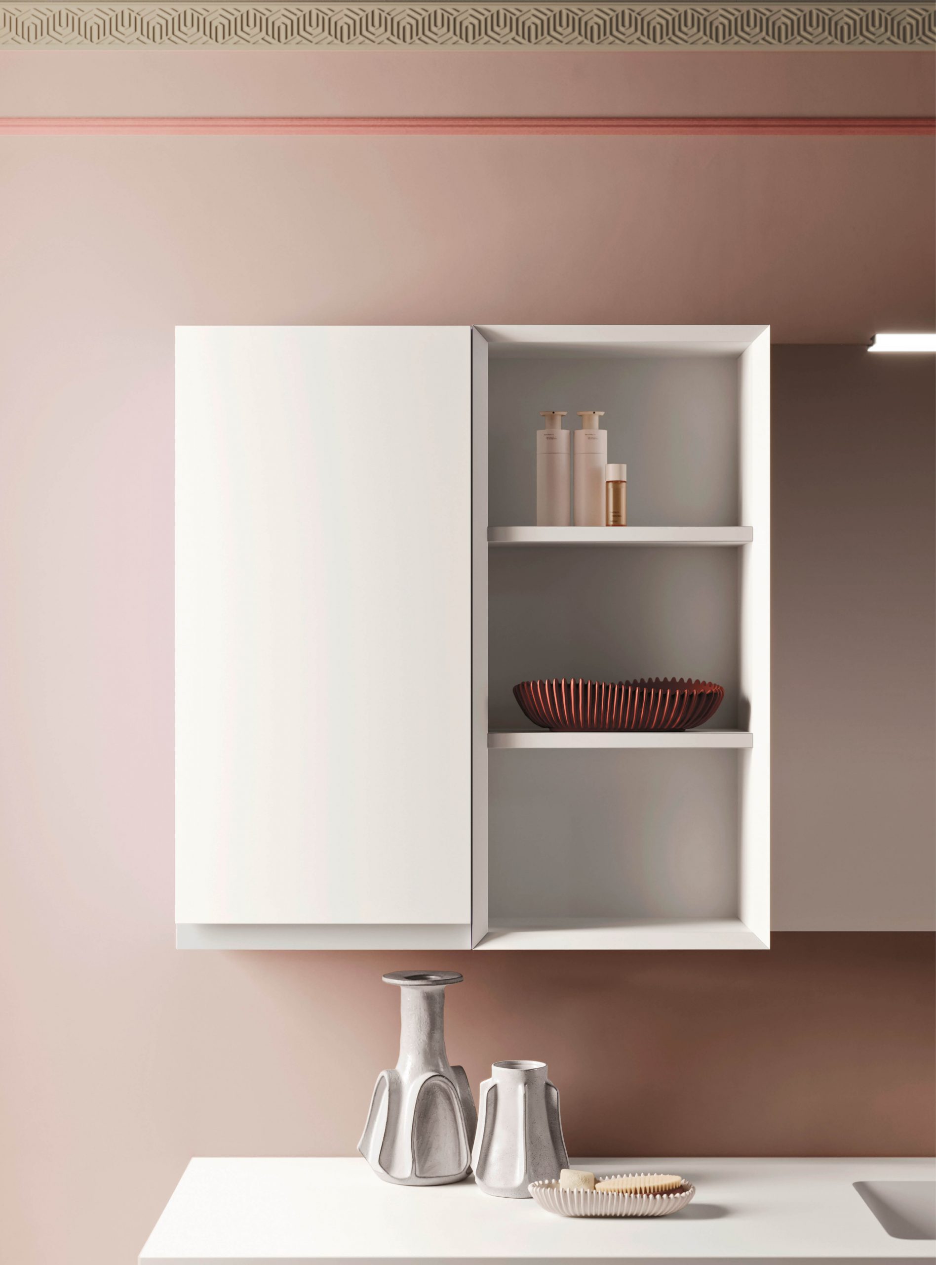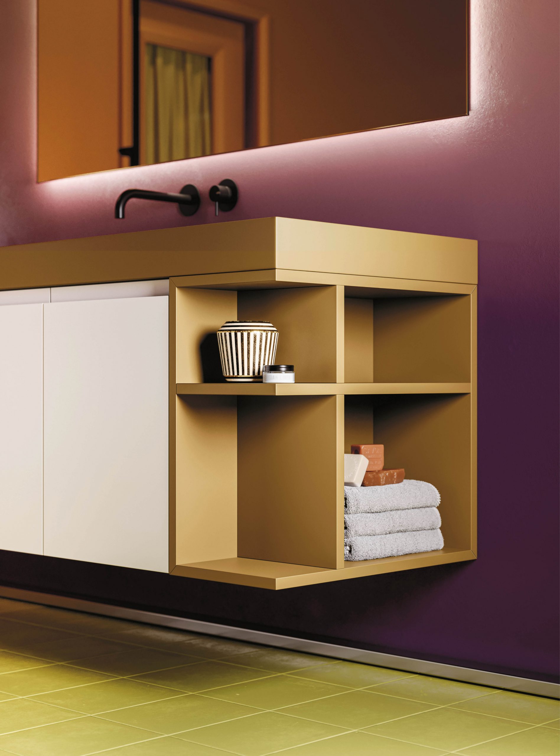 Street bathroom furniture features a comfortable grip integrated into the door, an aesthetic and functional element that is a mainstay of the collection. Practicality and refinement live in perfect harmony to create simple solutions and more sophisticated bathroom spaces, with that exclusive made-in-Italy quality. Simple, timeless shapes come together with the wide range of modular units in the collection, combining refinement and elegance and easily adapting to any bathroom space.