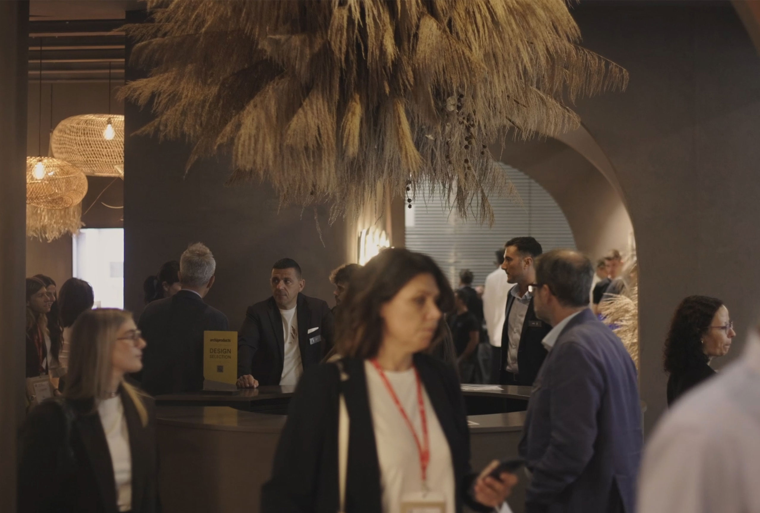 Light and dark colour schemes, neutral-toned furnishings, sinuous shapes, warm earth tones, calibrated lighting and natural materials transform the stand into an oasis suspended between design and well-being.